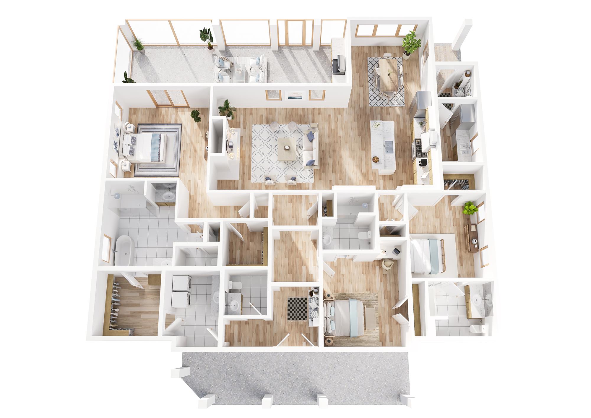 The primary suite retreat offers dual vanities, spacious walk-in closets, a luxury tiled shower, and a stand-alone bath for true spa-like relaxation. Bathrooms throughout feature upgraded custom tile finishes, blending modern design with comfort. Additional interior highlights include oak flooring with herringbone entry accent, mudroom, laundry room, and service yard for everyday convenience.