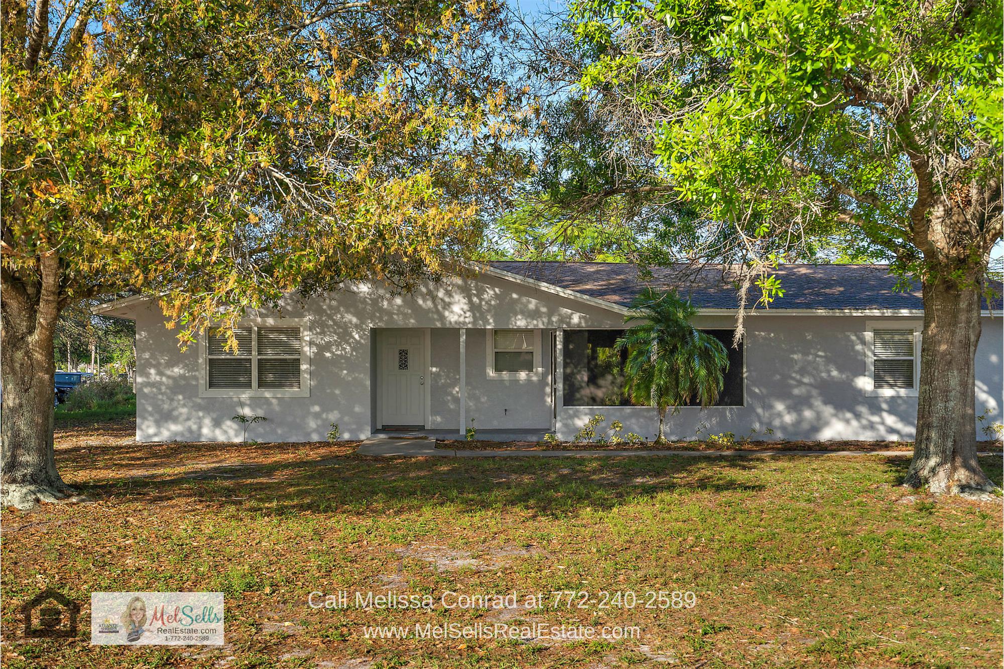 MOVE IN WITH EQUITY! APPRAISED @ 190K MOVE IN CONDITION ON OVERSIZED CORNER LOT. Super Cute!! NO HOA! Room for toys & vehicles! Home is a 3 Bedroom 2 Bath 2 Car Garage. Freshly painted in & out, fireplace, updated kitchen cabinets, counters & appliances (2 yrs ago) & bathrooms, Large Pantry, New AC, New Carpet in bedrooms, Tile everywhere else. Screened breezeway with New Screened Doors, All Hurricane Shutters (passed wind mitt), property has mature trees. Priced below appraised value (190k)! Super Clean & Ready for you! Get your boat out to the inlet in minutes! Dont miss this terrific opportunity! Set your showing today! CAN BUY FOR RENTAL AND GET $1500 Month! MELISSA CONRAD, REALTOR 772-240-2589 CELL