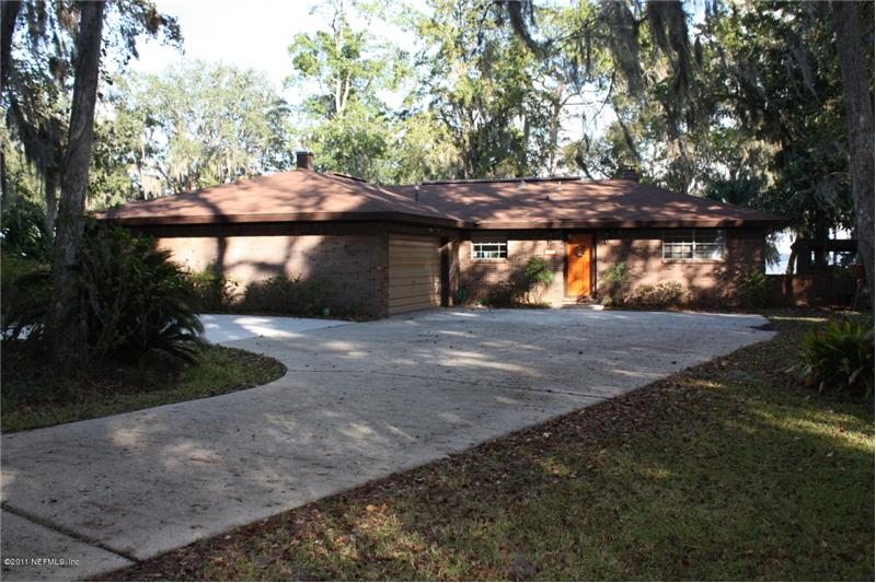 A fantastic 1 3/4 acre St Johns Riverfront homesite with long winding driveway through heavily wooded property to this delightful brick home. This home has large rooms with expansive views from all the main rooms.Step through the tile foyer to the spacious great room with three sets of sliding glass doors all overlooking large rear lawn & river. The wood burning fireplace has gas logs for easy ambiance on cool nights. Renovated Kitchen with tile floors, breakfast counter, drop in range with cook-top, microwave and full pantry, lots of counter space for the serious cook. Master suite has a huge walk-in closet and completely updated master bath. Decorator tile sets off the new shower for a light bright bathing experience.