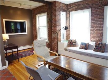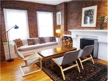 ***FULLY-FURNISHED CONDO*** Avl AUGUST 16. Walk 7-8 min. to Harvard T! Avl up to a year or longer. Pure elegance in this stunning top floor (~950sf) turn-key 1+ bedroom on the third floor in an 1890's Georgian bowfront townhouse. On Kirkland Street near Francis Avenue, steps to Harvard Law and Harvard Design School. Walk to shopping, restaurants. Spacious open living-dining with washer/dryer in-unit, gas fireplace, skylight, a wall of exposed brick, gigabit-speed internet, 56" wide-screen TV, cable with ~100 channels, fenced yard. ALL UTILITIES INCLUDED: heat, water, electricity, a/c, wifi, ca