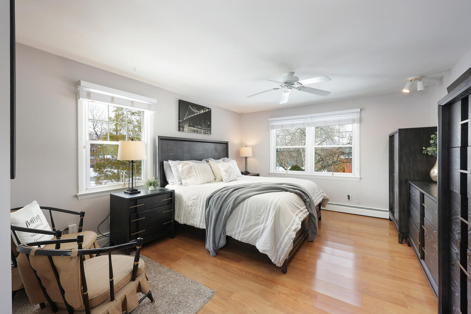 You’ll love this beautifully maintained and thoughtfully updated 3-bedroom + office & bonus room, 2.5-bath home offering approximately 2,300 square feet of comfortable living space, a finished walk-out basement, and a fenced backyard—perfectly situated for convenience. Curb appeal shines with a handsome brick front, charming covered porch with Ring doorbell, and a two-car garage with openers. The spacious backyard is designed for enjoyment, featuring a paver patio, beautiful koi pond, natural gas line for grilling, recently cleaned and reinforced PVC fencing, and a storage shed. Inside, the home was professionally painted in 2021 and showcases recently refinished hardwood floors in the living and dining rooms. The inviting living room offers a gas fireplace and dual entryways, including a pocket door to the kitchen. The eat-in kitchen is well-appointed with granite countertops, a breakfast area, bar-height seating, stainless steel appliances including a five-burner range, and a movable center island. The first floor also includes a laundry room with exterior access, powder room, office, and a primary ensuite. Upstairs, two additional bedrooms and bonus room feature refinished hardwood floors and share a full bath with tub/shower and dual vanity. The newly carpeted finished walk-out basement adds exceptional living and recreational space, complete with a pool table, shuffleboard, gas potbelly stove and French drain system. Additional highlights include an ADT security system with motion detection and Castle windows with transferable warranty.