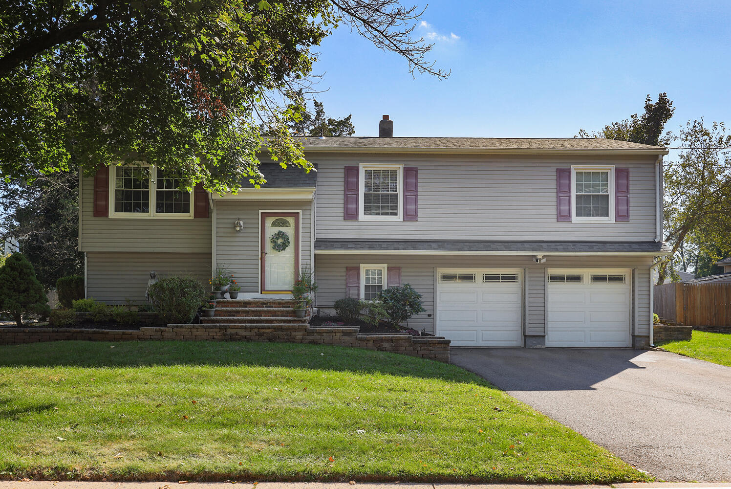Meticulously maintained and thoughtfully upgraded, this spacious 4-bedroom, 2.5-bath bi-level home offers style, comfort, and peace of mind. Highlights include a designer kitchen, newer roof, oversized composite deck with retractable awning, exterior motion-sensor lighting with WiFi camera, and a beautifully landscaped yard. The lower level features a welcoming family room with slider to the backyard, a fourth bedroom, powder room, laundry room, and access to the twocar garage. Upstairs, you'll find bright living and dining rooms, hardwood flooring (beneath carpeting), ceiling fans, and three additional bedrooms one with an attached built-in desk, shelving, and a Murphy bed. The primary suite offers a custom-organized closet with lighting and an updated bath showcasing a stylish Corian surround shower. The showpiece of the home is the stunning, thoughtfully designed kitchen blending elegance and function with paneled appliances, quartz countertops, tambour appliance garage, toe-kick drawers, under-cabinet lighting, recessed lights, vented microwave, five-burner gas range, water filtration system, and direct access to the deck. Additional upgrades include a whole-house generator with automatic transfer switch, 200-amp service, whole-house surge suppression, and tilt-in windows for easy cleaning.