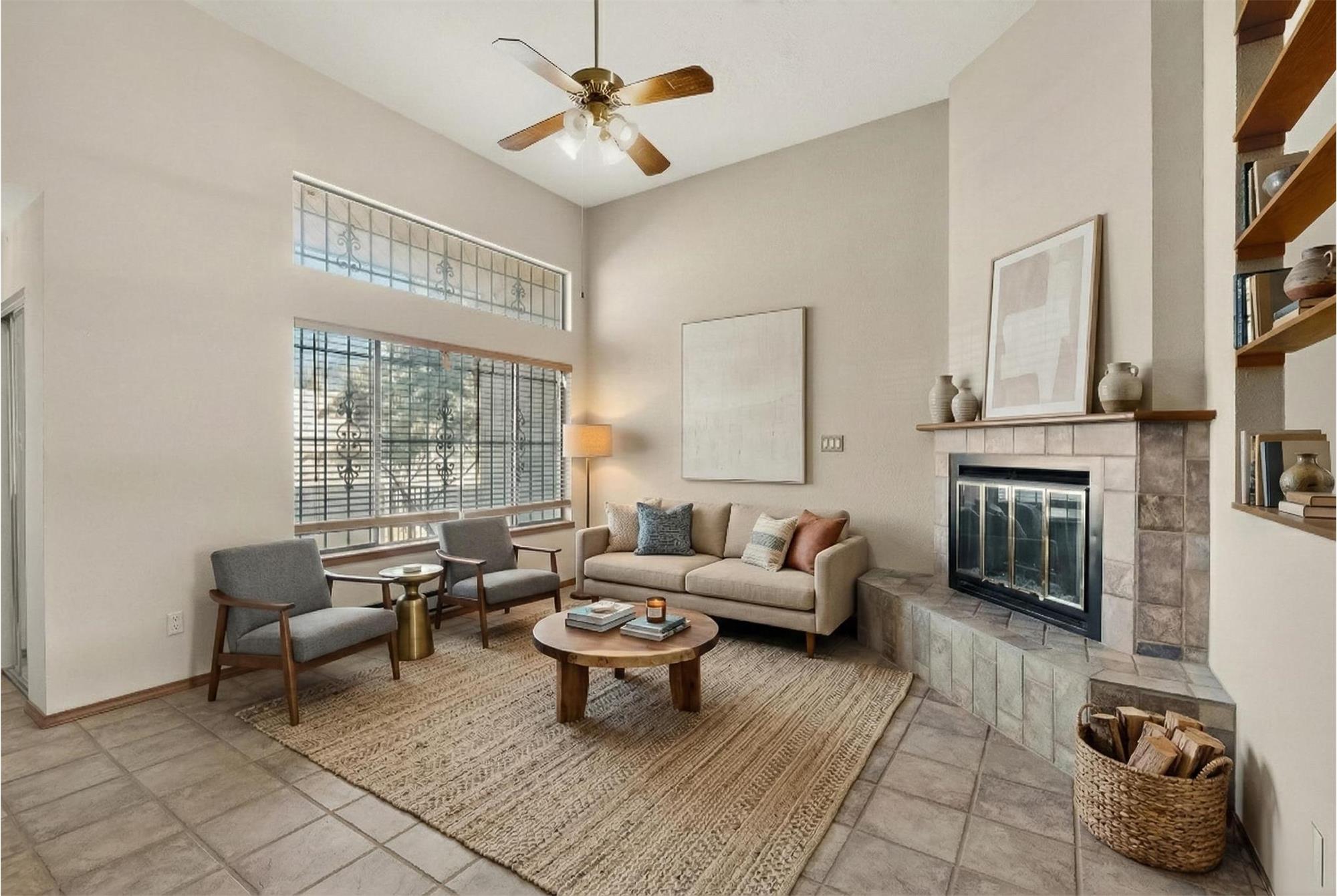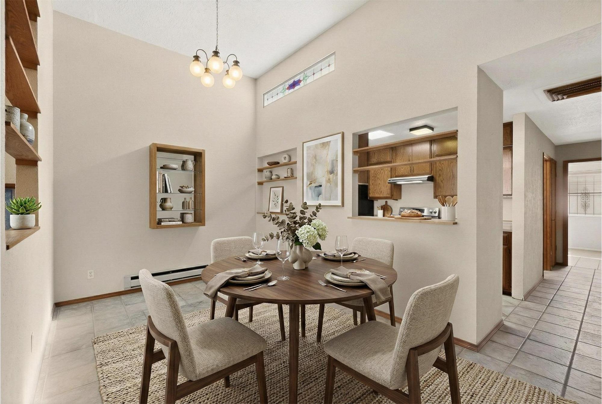 Welcome home to this charming Northeast Heights townhome. Once inside you are greeted by soaring high ceilings that create an open, airy feel throughout the living space. Pass through windows between the living area, dining area, and kitchen add additional light and visibility throughout. With two bedrooms, it's ideal for your guests, roommates, or a home office setup. The primary bedroom offers ample closet space and its own en-suite bath and backyard access. Most recent additions include a new TPO roof, new electric stove, new water heater, and conversion to all electric. Best of all, no HOA or HOA fees make this one very affordable.