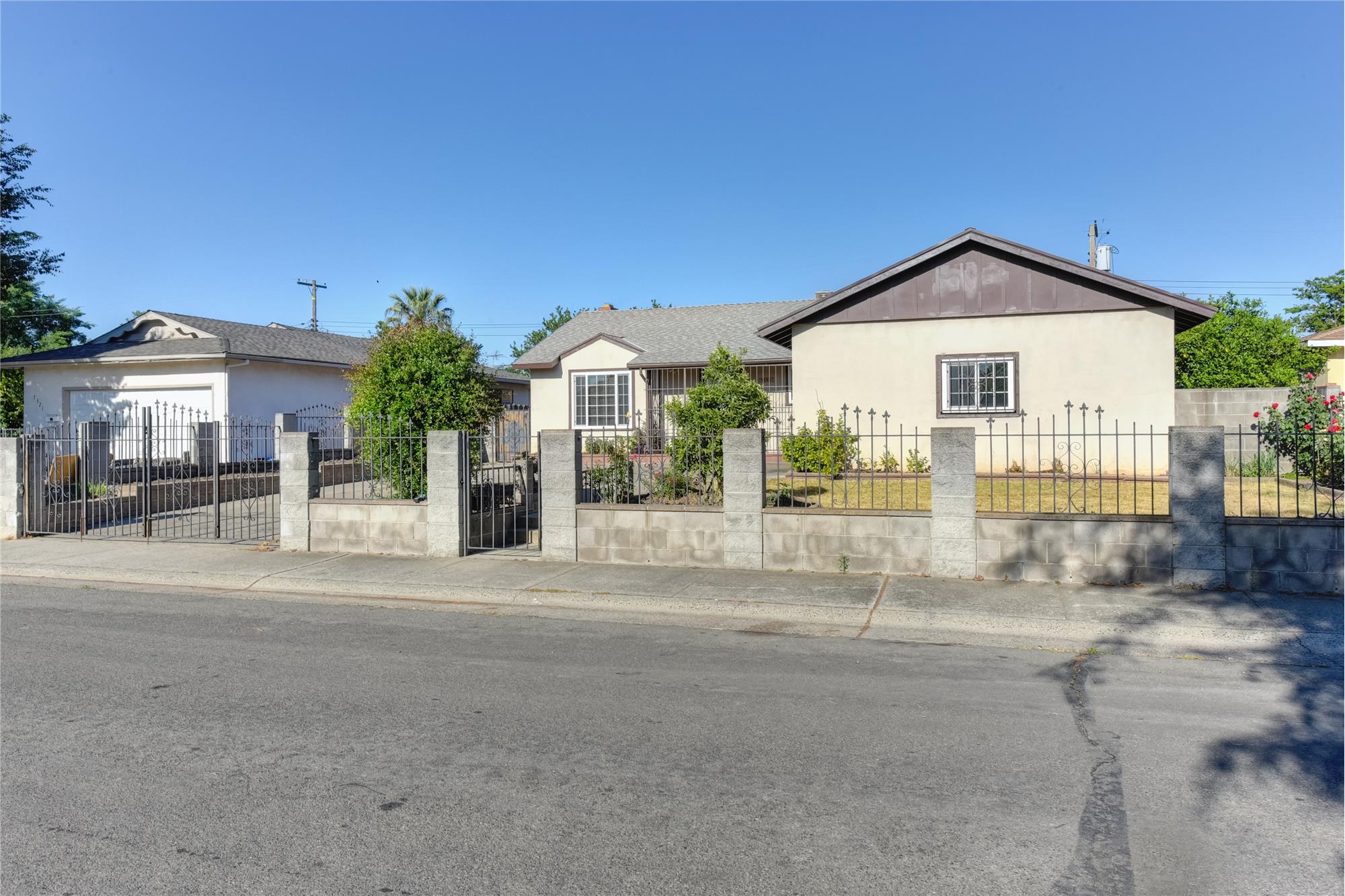 Great house for a small family or rental property! 3 bedrooms/2 full baths, dual pane windows throughout, wood floors and newer carpet in the bedrooms. Granite countertops in the kitchen and bathrooms. Large gated front yard and big backyard. Master suite has a shower & vanity sink. Clear Pest Report, certifiable roof. Close to schools, parks, and shopping. Come see this home before it's gone! Priced to sell quickly