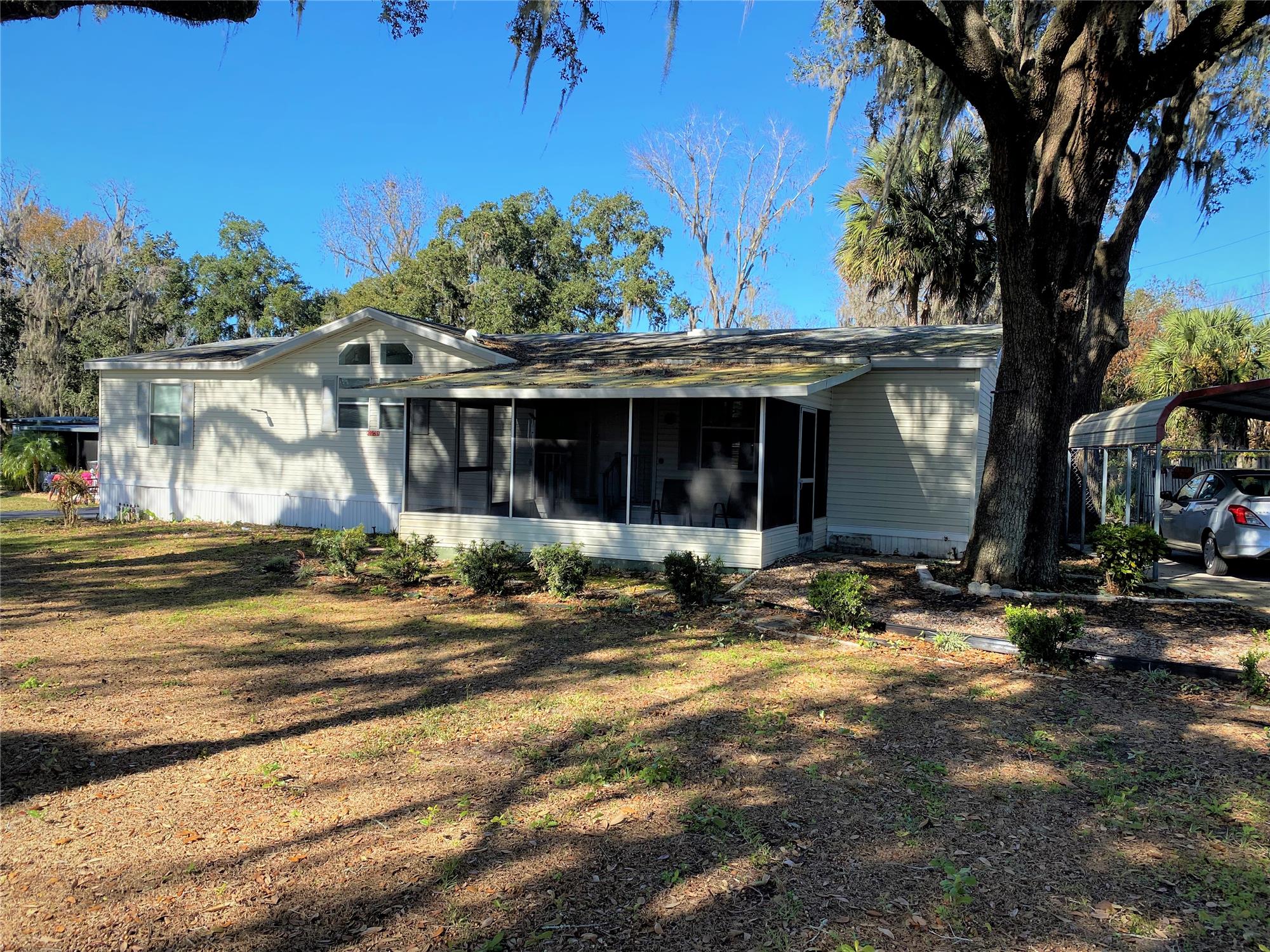 This well-maintained home is located outside of a Mobile Home Park, with NO HOA fees, NO lot fees, and access to a private community boat ramp! The home is located on a corner lot and offers a screened-in front porch, an open back patio, two sheds, and one with electricity, the Vivint security system is not being used by the current owners, however, can be activated. New laminate floors, freshly painted, overgrown tree branches have been cut, and the roof was replaced in 2018 as well as new plumbing, septic tank was pumped a year ago. The home has plenty of space inside and out and an open flo