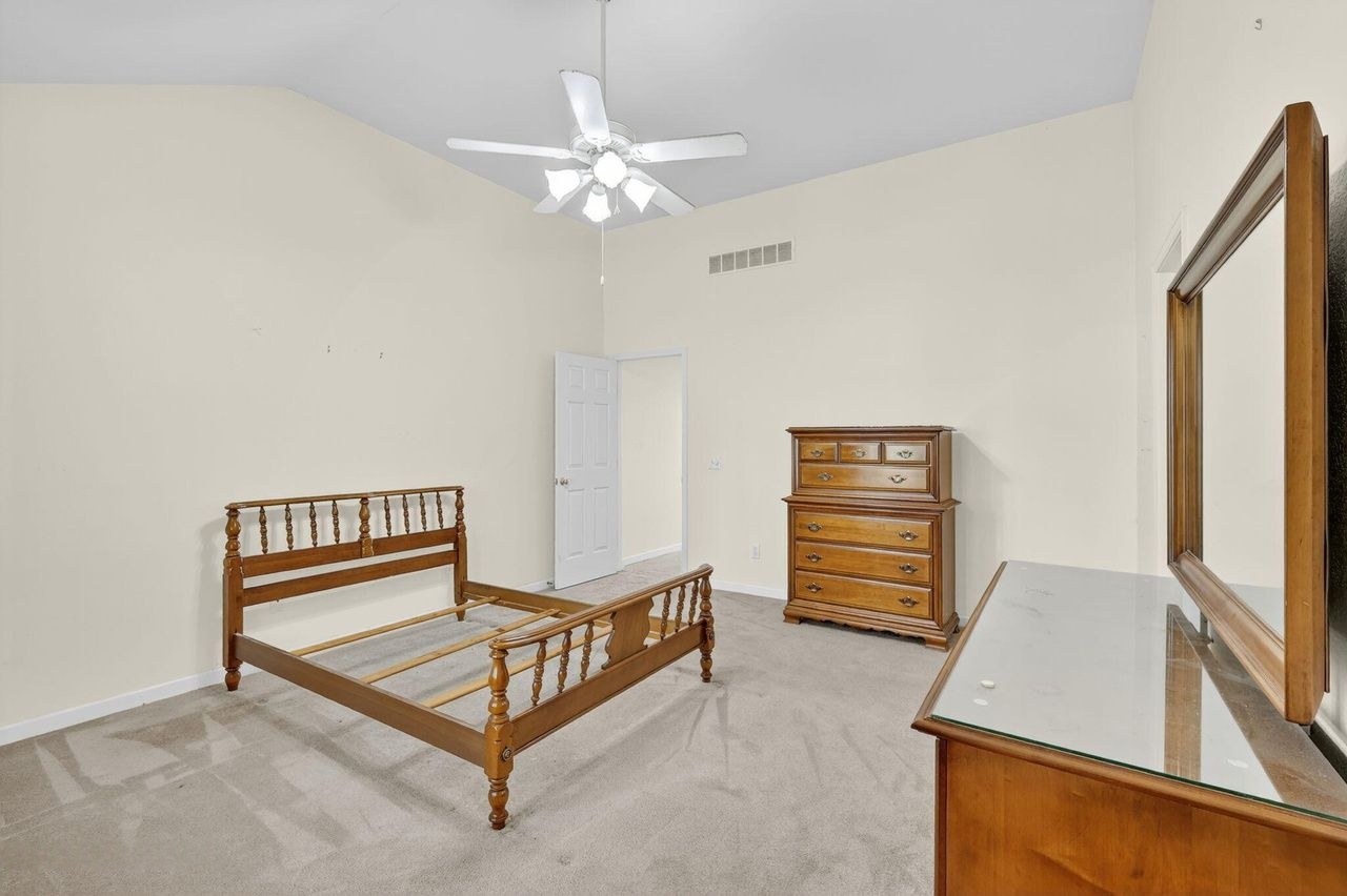 Open feeling, vaulted ceiling villa at back of cul de sac neighborhood. Corner fireplace in open living room. French doors to den w/bay window. Primary suite with vaulted ceiling, hardwood floors in generous bathroom and walk-in closet. Open kitchen with corner sink, all appliances and pantry. Sunroom leads to covered back porch. Laundry room w/hardwood floor, washer and dryer and utility sink, convenient to the attached garage.