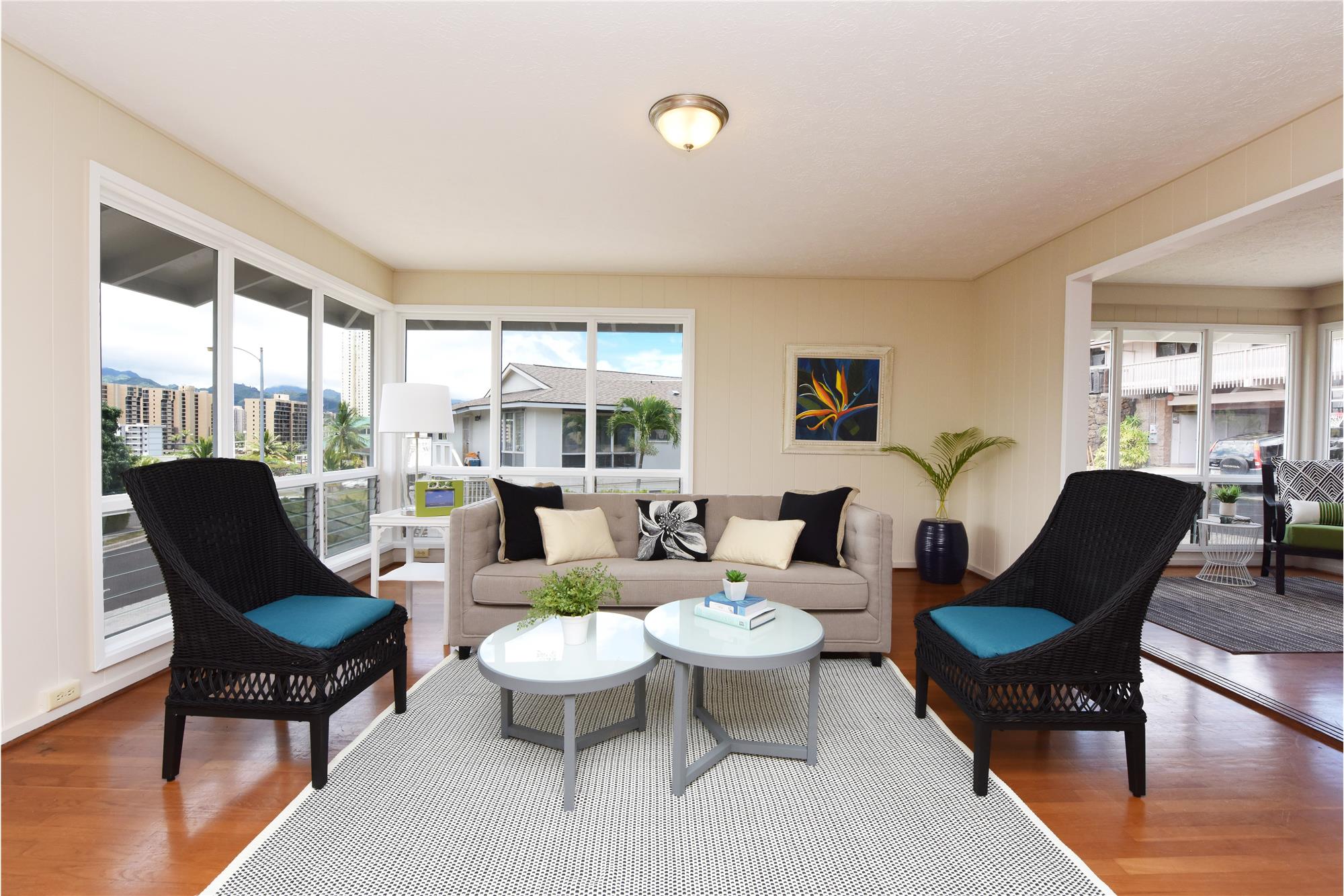 Enjoy the conveniences this home has to offer! Great location in town. No long commutes to and from work everyday. Near freeway on-ramps and off-ramps while still being in a quiet suburban neighborhood. Right around the corner from shopping, bus lines, airport, and Aloha stadium. Home is perched on a quiet cul-de-sac to catch cool breezes and have amazing views of Moanalua Valley. Nice patio area to enjoy summer BBQs. Recently updated and ready to move in!