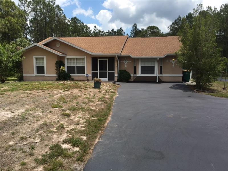 Great home in Golden Gate Estates for your family. Over-sized, mostly cleared ,2.73 acres with a detached 3 car garage for all of your toys. The driveway is paved from the street all the way back to the detached garage which is located behind the home. PLENTY of parking. Home has 3 bedrooms and 2 baths and a newly updated kitchen with new microwave and range as well as new washer and dryer. Has all window coverings in place. Brand new screens on the lanai with privacy screens on one side. For an extra bonus, there is an additional mother-in law suite that has separate entrance, full bath and kitchenette area. Kitchenette has a refrigerator, microwave, sink and spacious counter and cabinets. This home has a new roof, paved driveway with plenty of parking, AC was just serviced and works great, fenced in back yard and is HIGH & DRY - NOT in a flood zone.