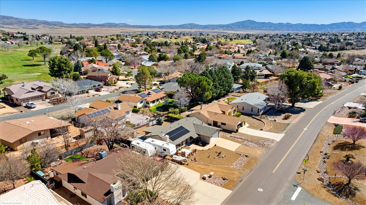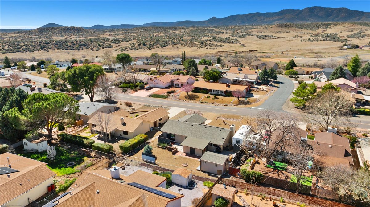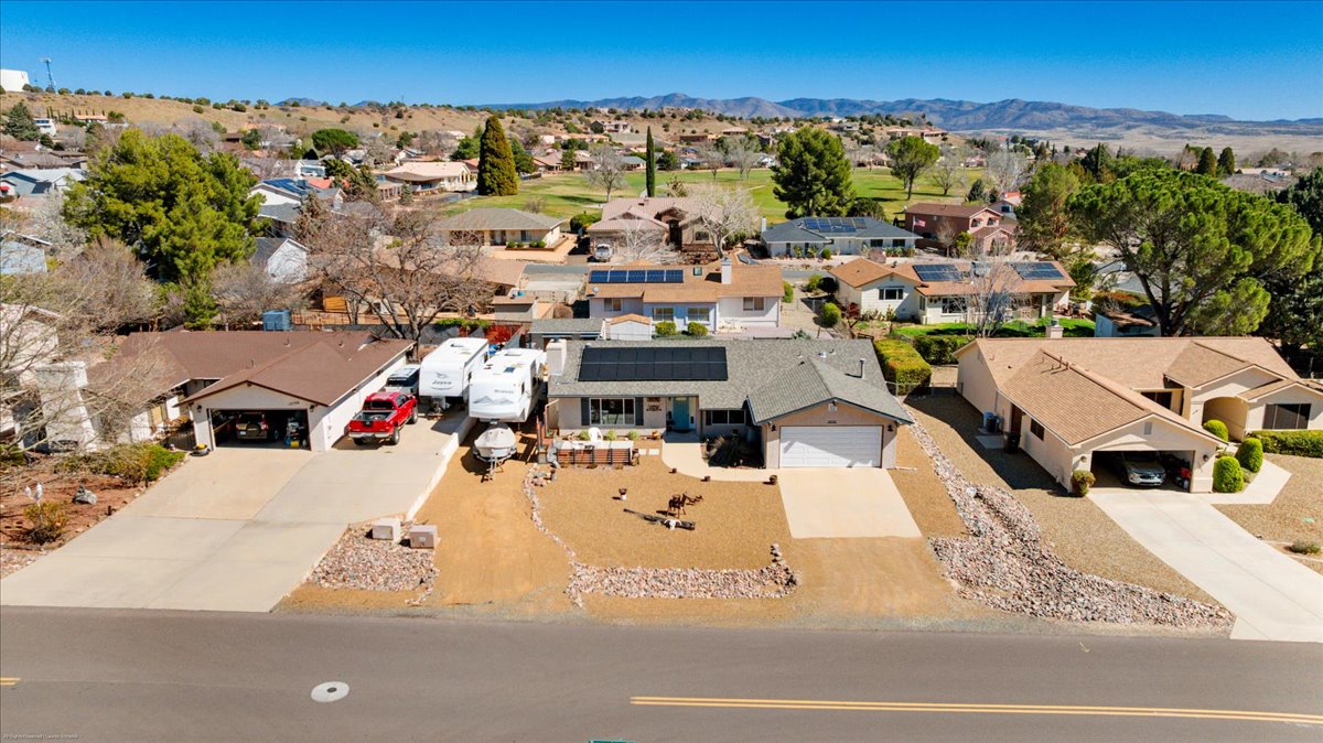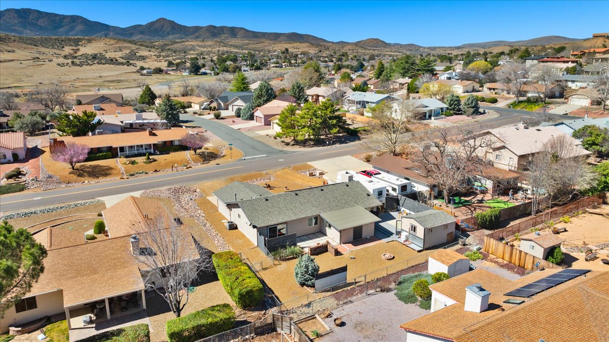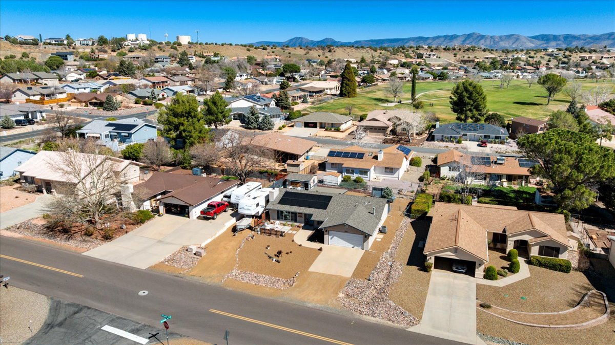 Remodeled 3 bedroom, 2 bathroom home for sale with RV parking and 30-amp hookup. Situated on a .21-acre lot, this 1,812 sq ft move-in ready home offers modern upgrades, energy efficiency, and scenic southern foothill views. The updated kitchen features quartz countertops, a large custom island, and open flow into a spacious family room filled with natural light. The primary suite includes private deck access, creating a peaceful outdoor retreat. Outdoor living shines with an oversized entertaining deck and detached shed/man cave--perfect for hobbies, storage, or flex space. Additional highlights include vinyl windows, leased solar at just $86/month for reduced utility costs, a new roof (2019), and HVAC system replaced in 2019. Located in the desirable Prescott Country Club golf community near shopping, dining, and outdoor recreation, this home offers the ideal blend of upgrades, views, RV parking, and energy-efficient living.