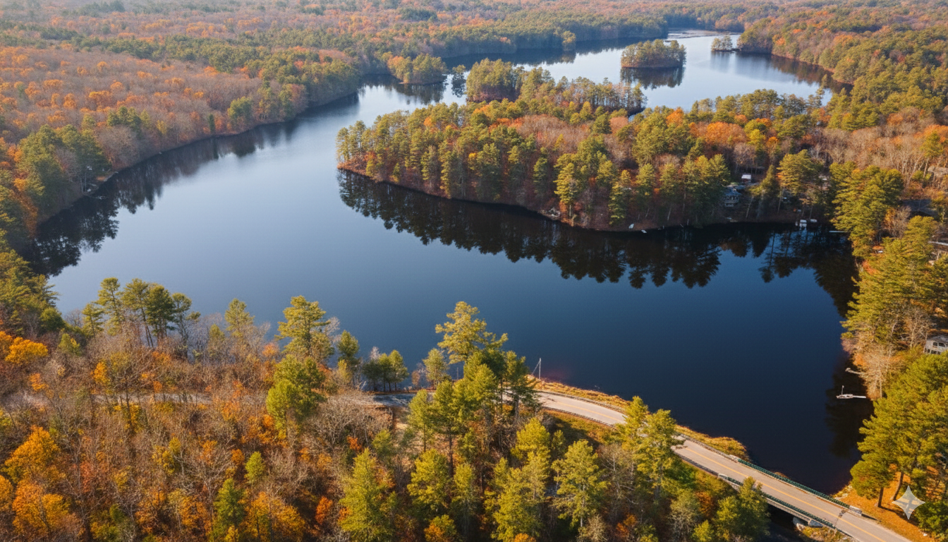 Brooks Pond covers roughly 179 acres, surrounded by forest, conservation land, and six small islands. The water is known for being calm, clean, and ideal for non-motorized recreation. A small public access point exists, but the pond is predominantly quiet, with limited parking and rules designed to preserve its natural character.