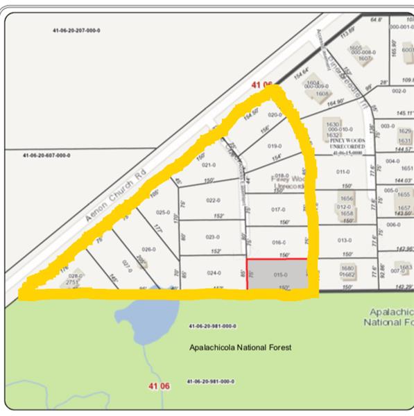 Attention Builders and developers! 14 individually parceled lots on 3.89 acres of beautiful land with both lake and Apalachicola National Forest frontage.