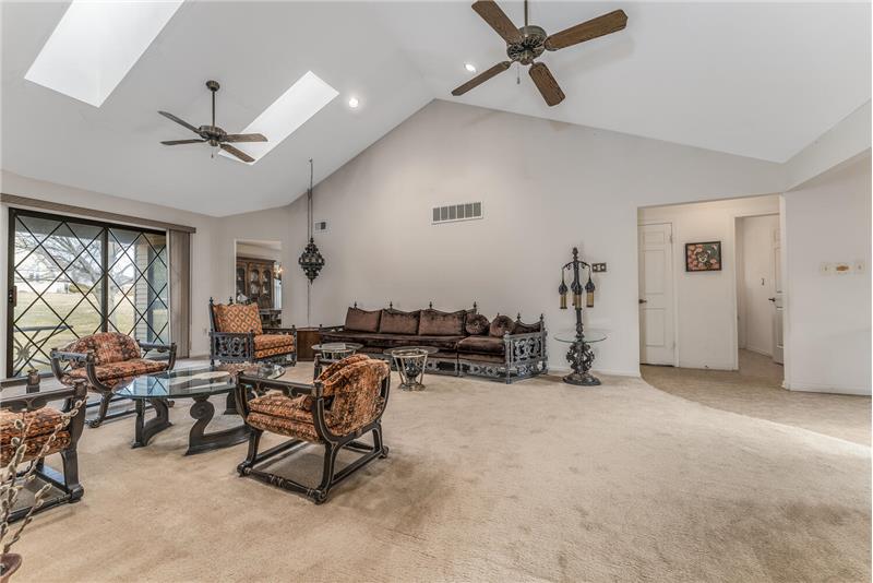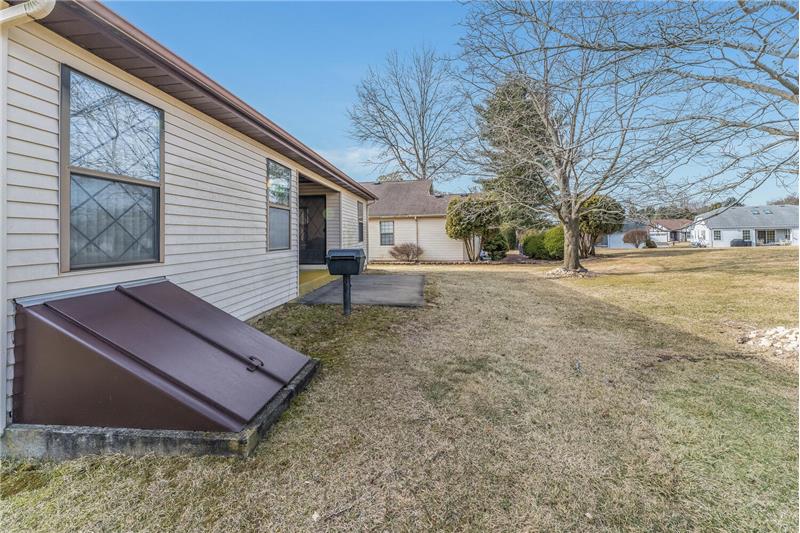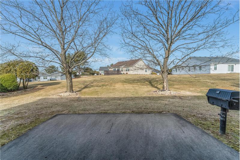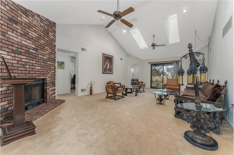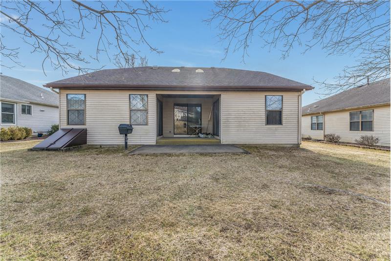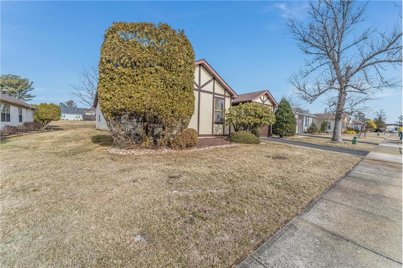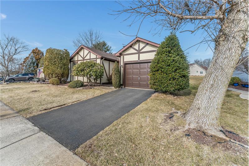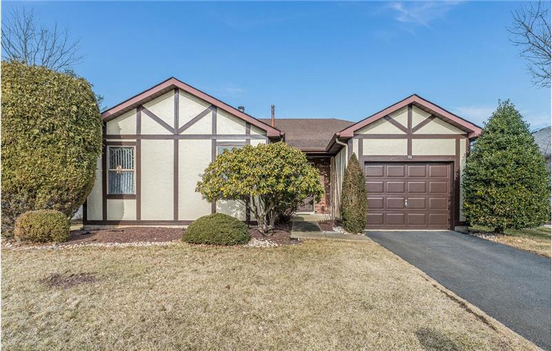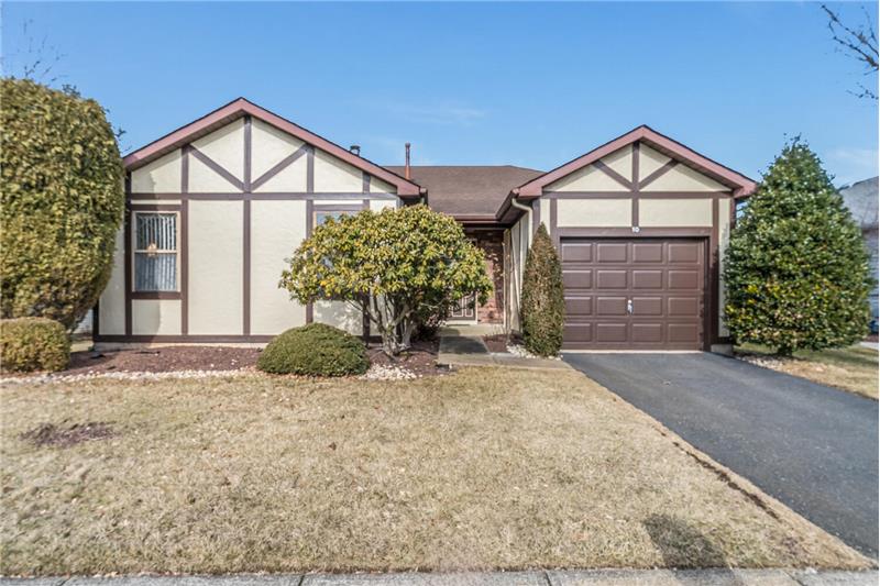 A convenient floorplan welcomes you to this one-level ranch home in the desirable Greenbriar 55+ community. Hillyard model features a generous foyer leading into an expansive living room with 18 ft. cathedral ceiling, skylights, and a brick fireplace. Large eat-in kitchen connects to formal dining room. Two bedrooms and two full bathrooms, plus an additional den/home office. Ample storage closets throughout the home. You will love the covered patio, a charming outdoor courtyard overlooking the lovely back yard. Great community amenties: clubhouse, pool, sports & social activities.