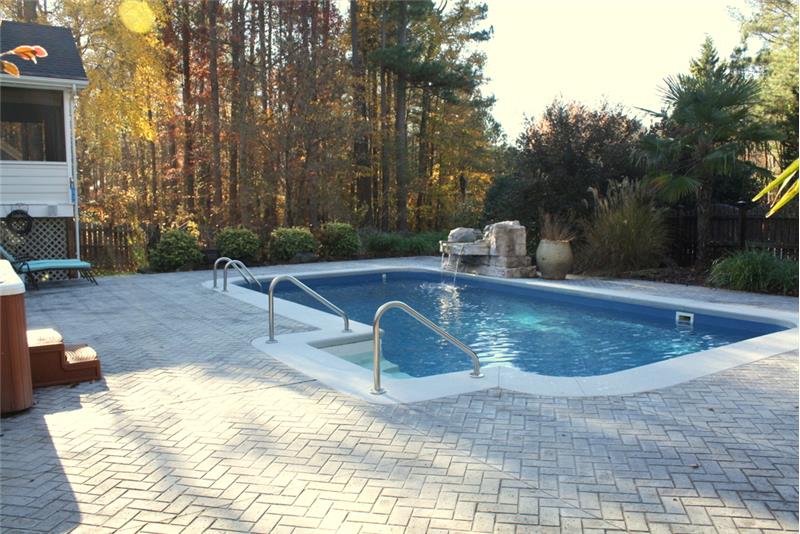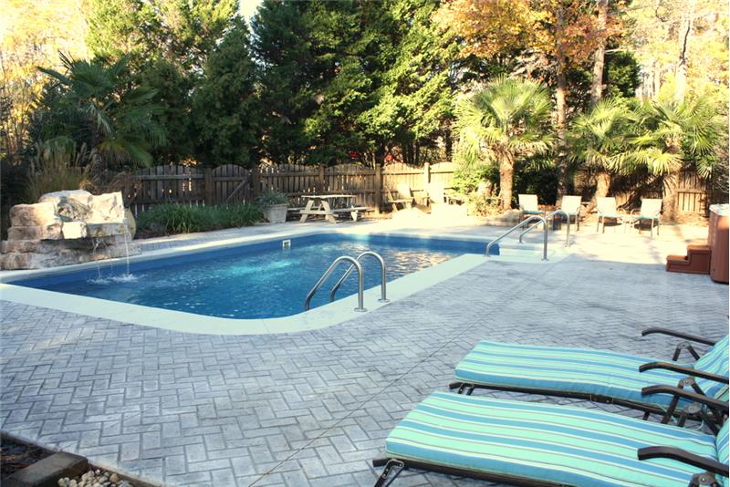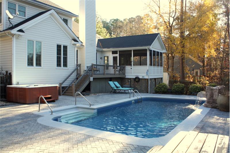 ENJOY THIS BACKYARD OASIS! Heated-Saltwater Inground Pool with waterfall feature! Trex Deck with wrought iron spindles, fenced backyard, screened porch with beautiful high ceilings & market lights! NEW ROOF! Great open concept with HIGH ceilings & wood floors! 2 fireplaces, plantation shutters, GRANITE counters, HUGE island kitchen with Stainless Steel appliances including Refrigerator! 2016 Bosch cooktop & Bosch Dishwasher! 1ST FLOOR MASTER SUITE with HUGE walk in closet & jetted tub. Newer siding & windows. 1 year home warranty included!