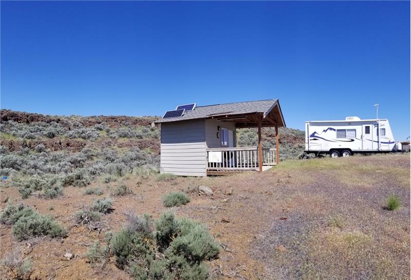 Secluded site located in Rimrock Meadows a private community that offers amenities such as a clubhouse, pool, campgrounds and more. RM is a great place to escape the city and experience the natural beauty of nature. Whether you like hiking, biking, fishing, hunting, wine tasting, or just relaxing, you will find something to suit your taste. The site features a 12' X 8' shed with solar panels and covered 4' x 12 porch. A 26' Rainier trailer adds to the turnkey feature of this property. Level 40' x 40' gravel pad for parking and firepit.