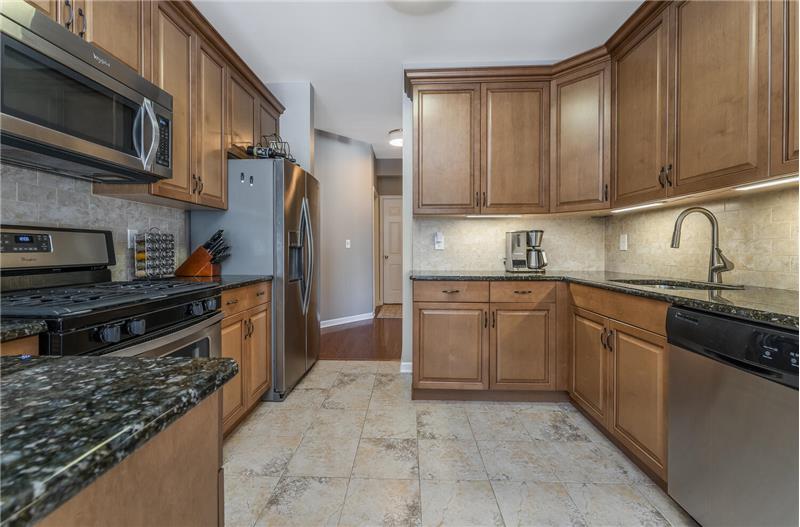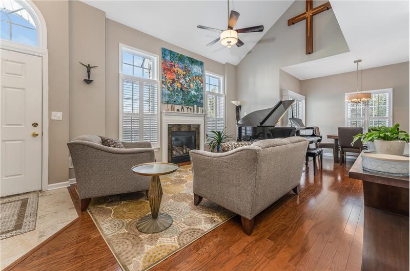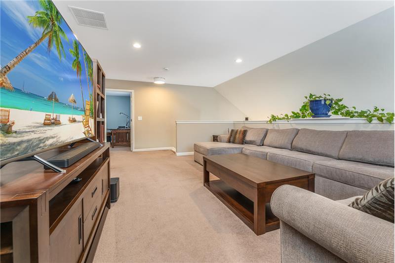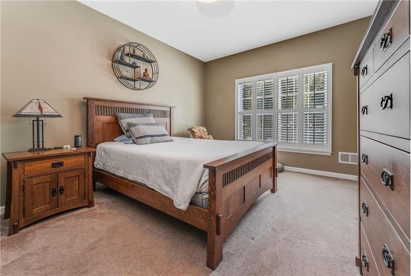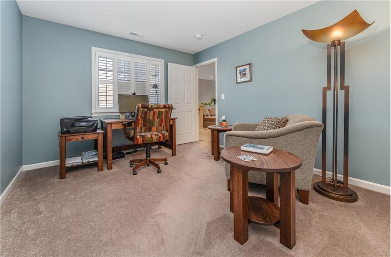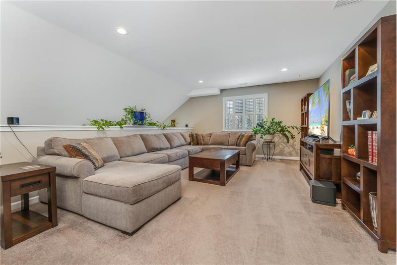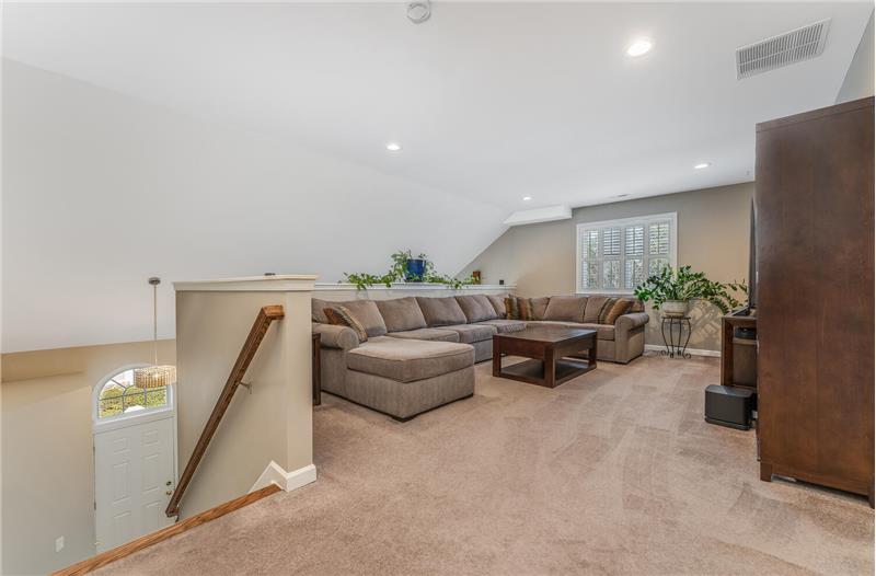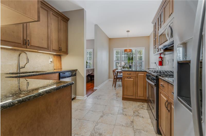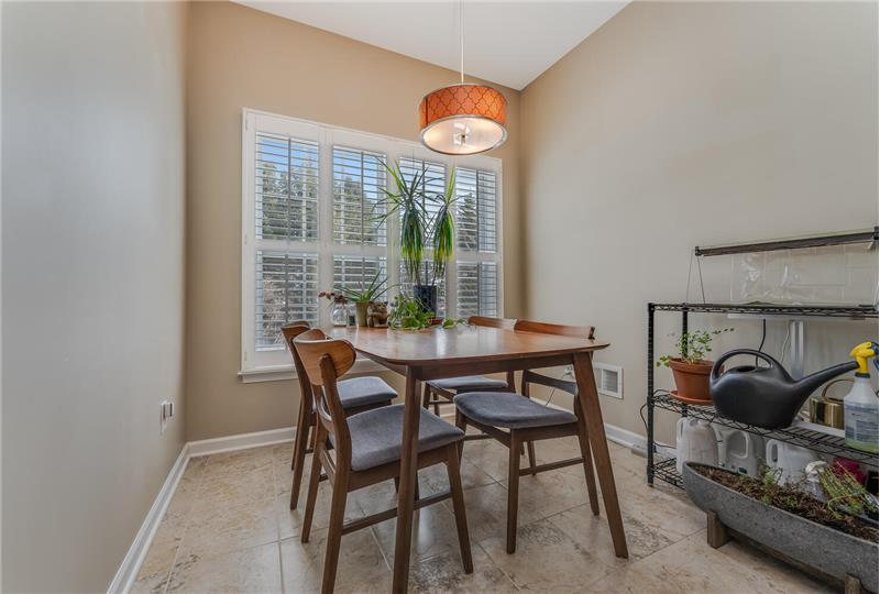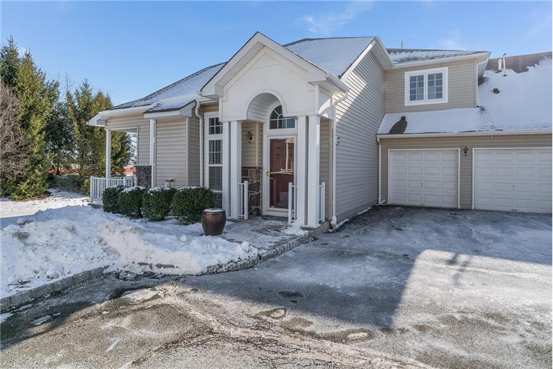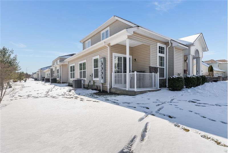 Attractive end-unit townhome, conveniently located in The Pointe at Turnbury, a gated 55+ community. Superb floorplan featuring a loft den above the living room with vaulted ceiling & gas fireplace. Eat-in kitchen features maple cabinets, stainless steel appliances, & granite counters. Plantation shutters throughout. Dining room connects to patio overlooking lawn & trees. Primary suite on main level, with two bedrooms & full bathroom upstairs. Oversized two car garage with extra storage. Amenities including clubhouse, gym & outdoor pool. A comfortable home in pristine, like-new condition.