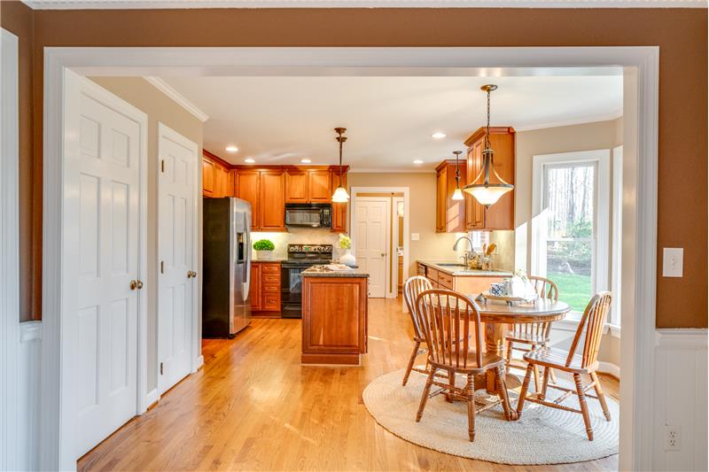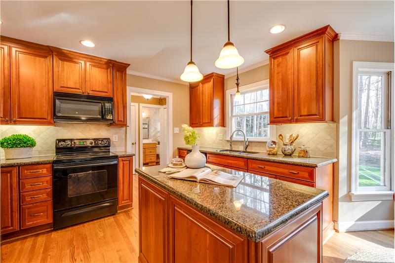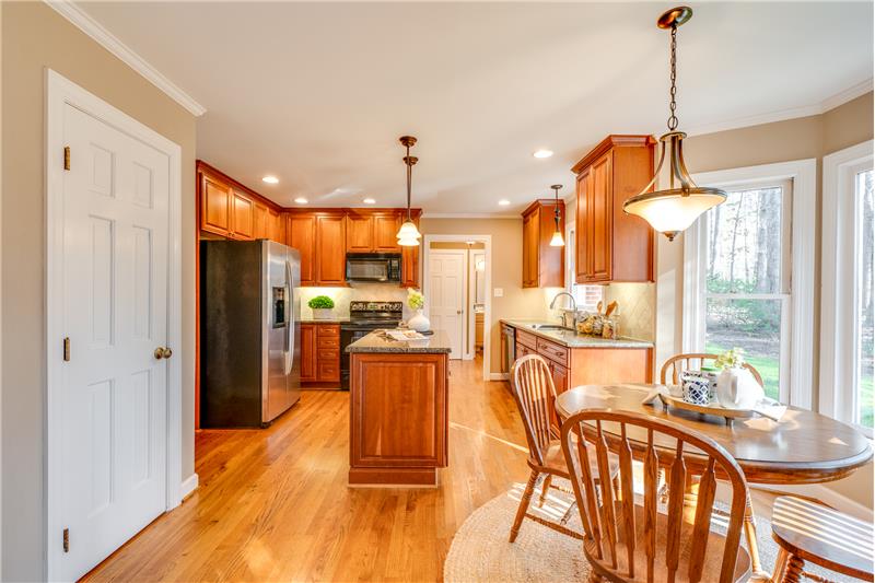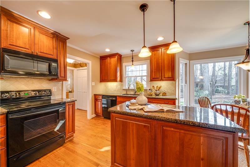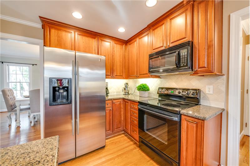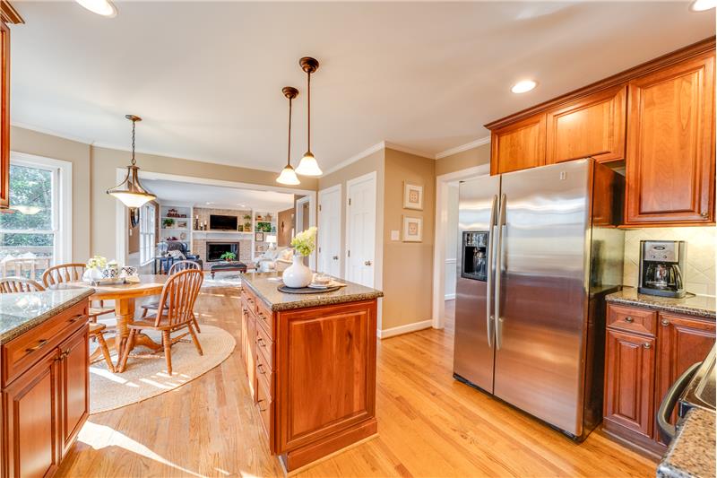 STUNNING ALL BRICK HOME IN NEIGHBORHOOD WITH SIDEWALKS! Beautiful hardwd flrs throughout 1st flr. HUGE liv rmthat could be used as an office or a pool table rm! Updated island kitchen w/ granite counters, custom tile backsplash & under cabinetlighting. Refrigerator incl. Gas fireplace w/ beautiful brick hearth. Oversized deck was just restained. Roof-2016-Front door stoop/steps/handrail-2016 Exterior repainted 2017-Refrigerator Included-Great attic storage. 1 year home warranty included. HUGE backyard!