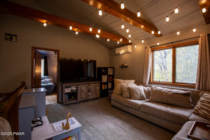 Nestled in a peaceful community surrounded by nature, this 4-bedroom, 2-bathroom chalet offers the perfect blend of comfort, privacy, and recreation. Set on a quiet, private lot that backs against beautiful forest, you'll enjoy unmatched rear privacy and the serenity of a wooded backdrop. The home's warm and inviting design features an open-concept living area with rustic charm, soaring ceilings, and large windows that fill the space with natural light. This home has 3 types of heat proprane, woodstove and pellet with ductless mini splits installed just last year. Step outside and take in ...