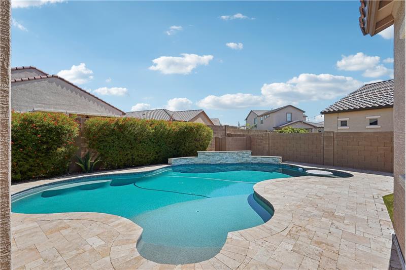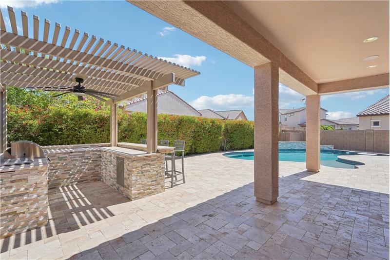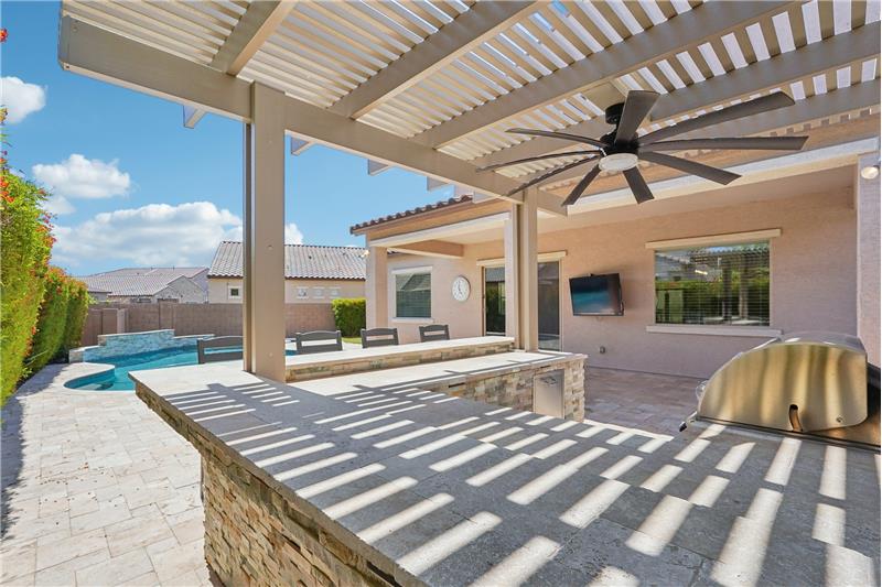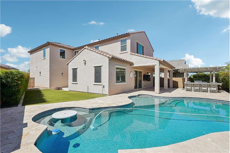 Situated in one of Northwest Peoria's most coveted neighborhoods, The Meadows, this beautifully upgraded home is a must-see. With designer touches throughout, high-end features, and a backyard made for entertaining, it's the complete package. Step into your own private outdoor retreat, featuring a sparkling pool, built-in BBQ and outdoor kitchen under a custom pergola, extended patio space for gatherings, and a cozy fireplace tucked into the side courtyard, an ideal spot for quiet evenings or weekend hangouts.