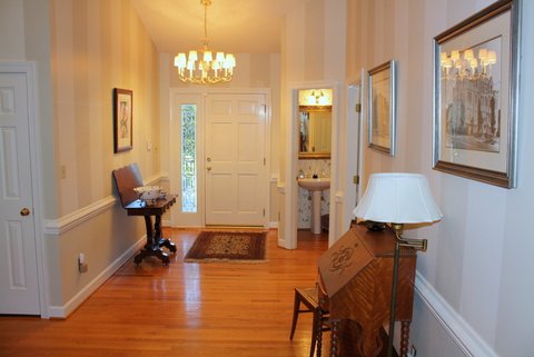 HARD TO FIND RANCH IN DESIRABLE POOL/TENNIS COMMUNITY! Gleaming hardwoods, tons of moldings, Island kitchen with solid surface counters, custom tile backspash, wall oven, refrigerator & desk area. You will love the beautiful sunroom with lots of natural light! Washer & dryer & 1 yearr home warranty included. Beautiful brick patio with water feature overlooking private backard! WOW!