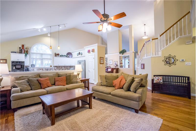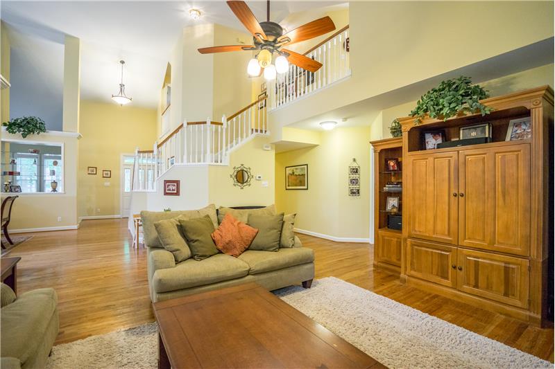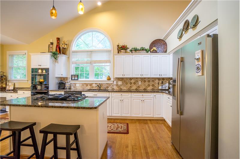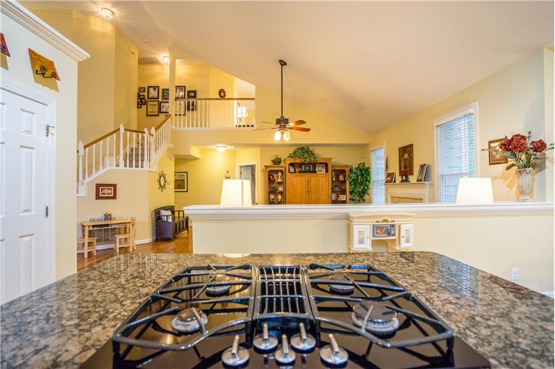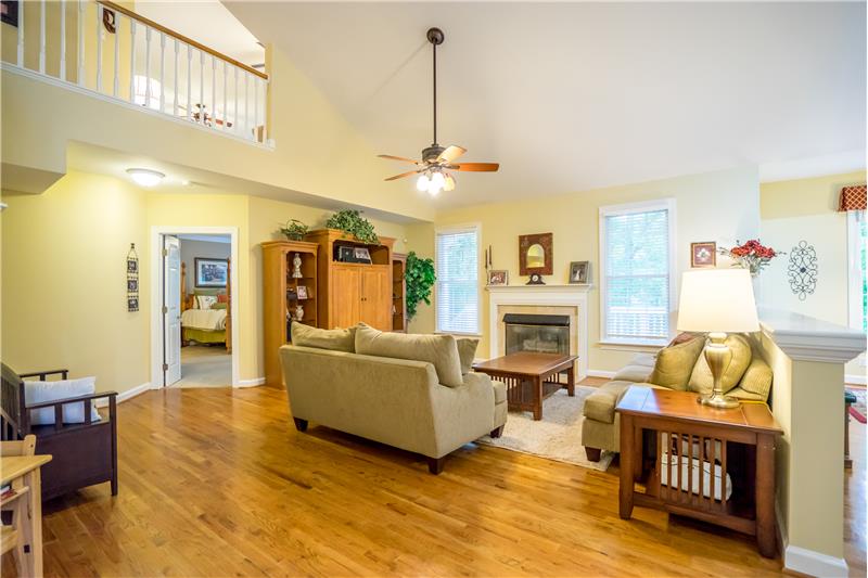 GREAT OPEN CONCEPT WITH SOARING CEILINGS! 1ST FLOOR MASTER SUITE! New Fiber Cement siding! Hardwoods on most of 1st floor, island kitchen with granite counters. Jenn Aire gas cooktop, wall oven/micro combo. Fireplace in living & family room. Security system, irrigation system, fenced yard, lots of storage, side entry garage! You will love the fire pit for entertaining! Great cul-de-sac location in pool community! New interior paint - tankless hot water heater! 1 year home warranty! Priced to sell!