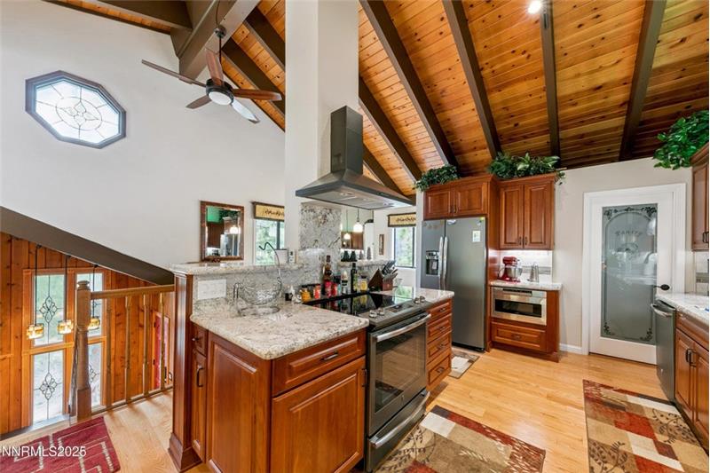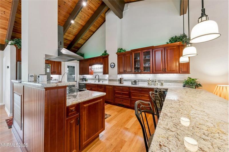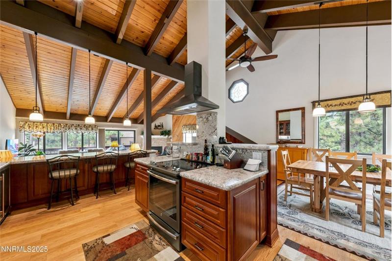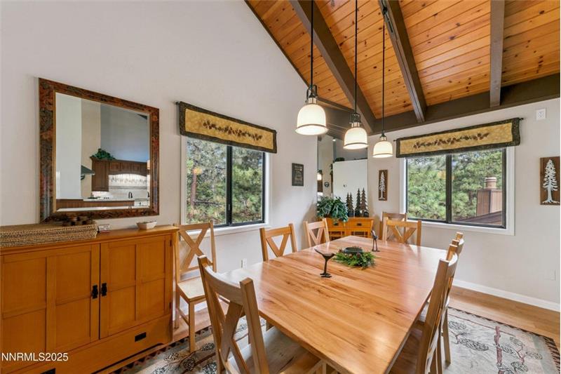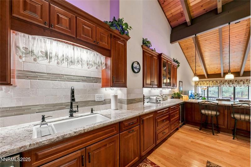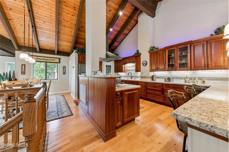 Live the life you deserve in beautiful Lake Tahoe.This immaculate Townhome is truly turnkey with a lovely remodel and furnishings included.The custom designed kitchen is the heart of the home with granite counter tops, cherry cabinets, newer appliances and a built in beverage station. There is lots of cooking space along with a breakfast bar and enclosed walk-in lighted pantry. The large dining room is perfect for holiday gatherings. A large deck with patio furniture and barbeque is perfect for summer evenings.