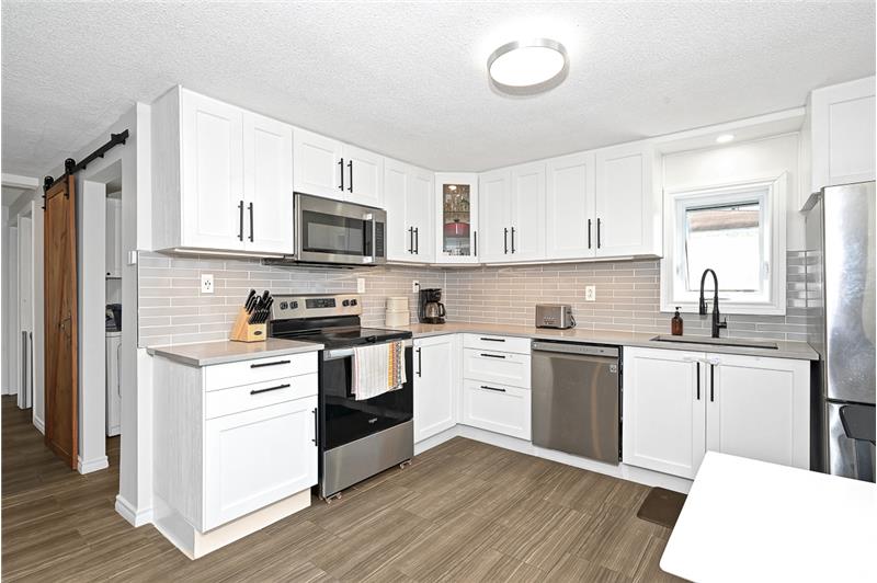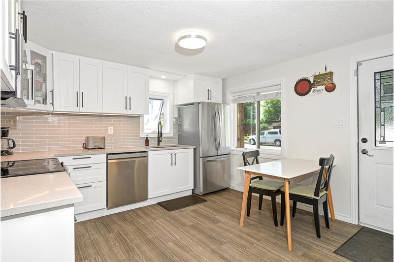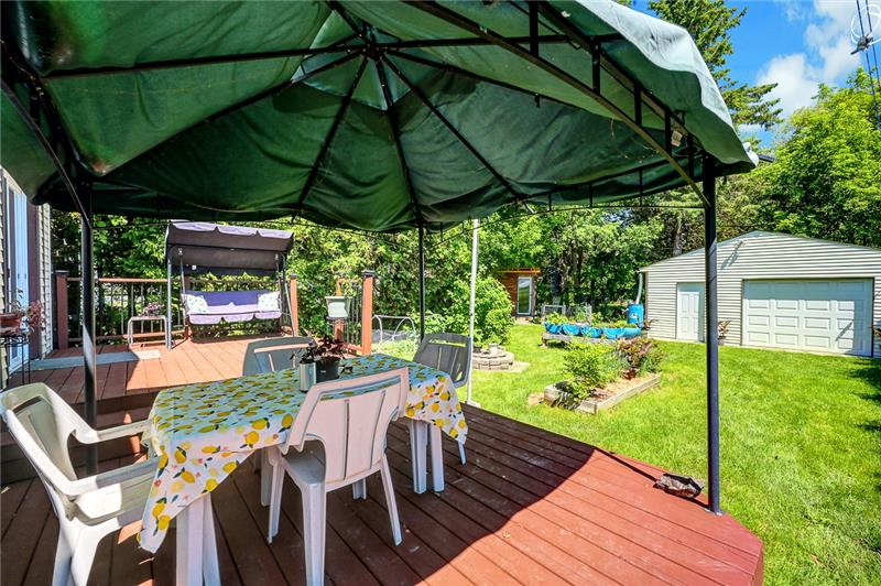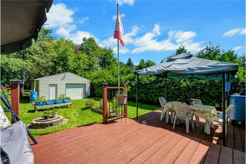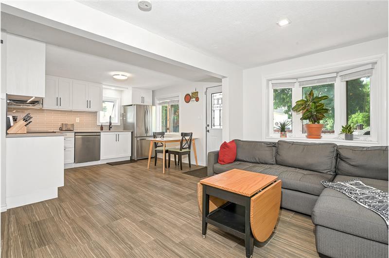 Charming updated bungalow 20 mins from Ottawa with large yard, 2-tier deck, renovated kitchen, 2 beds, modern bath, mudroom, epoxy floors, 240V garage, new roof (2025), and AC (2021).