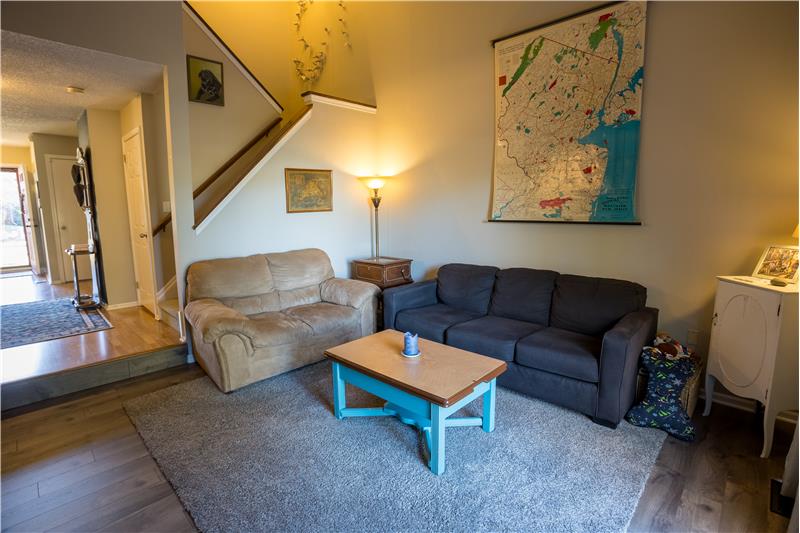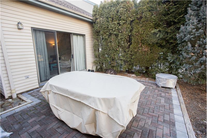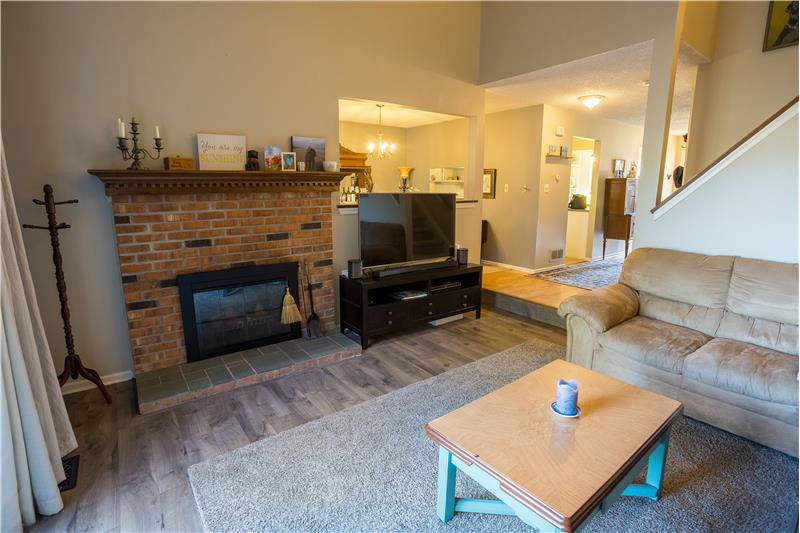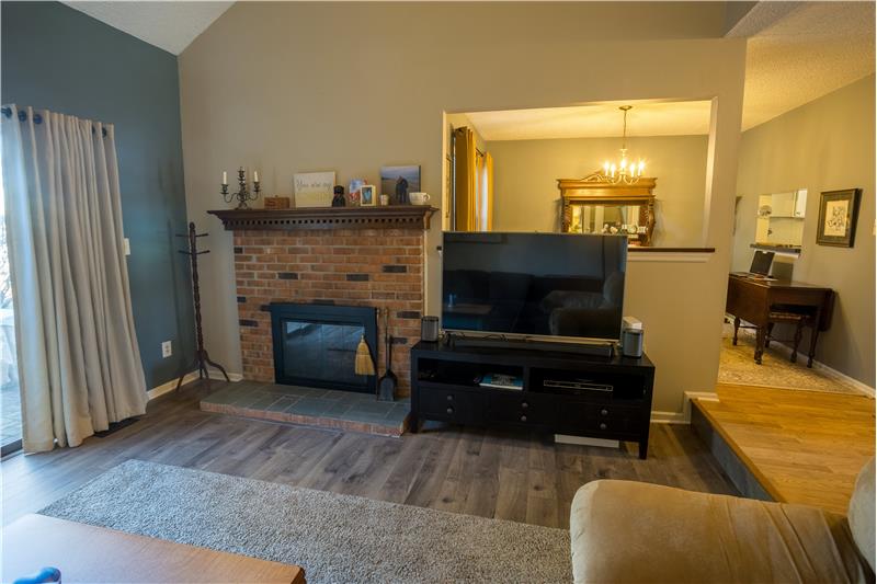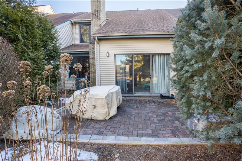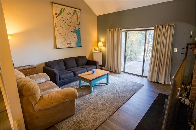Welcome to this beautifully updated home offering 2 spacious Bedrooms, 2.5 Bathrooms, and a 1-Car Garage. As you enter you'll be greeted by an inviting and thoughtfully designed first floor, perfect for both relaxation and entertaining. The open layout features a bright and airy Living Room with dramatic vaulted ceilings, a cozy wood-burning fireplace, and a sliding door that leads to a newly relaid patio (2022) ideal for outdoor gatherings.