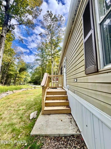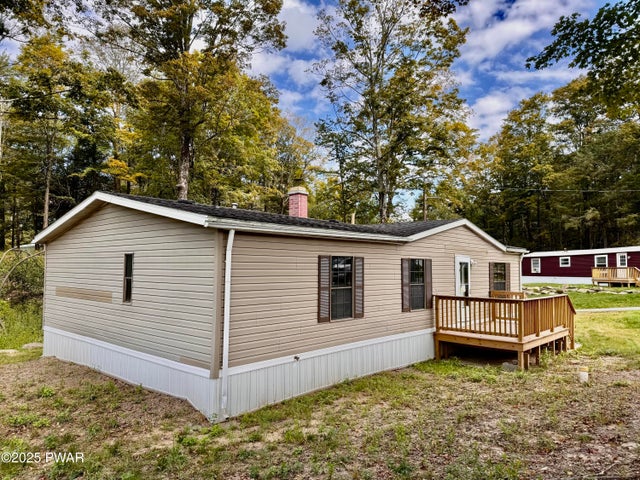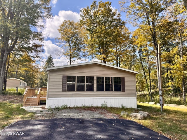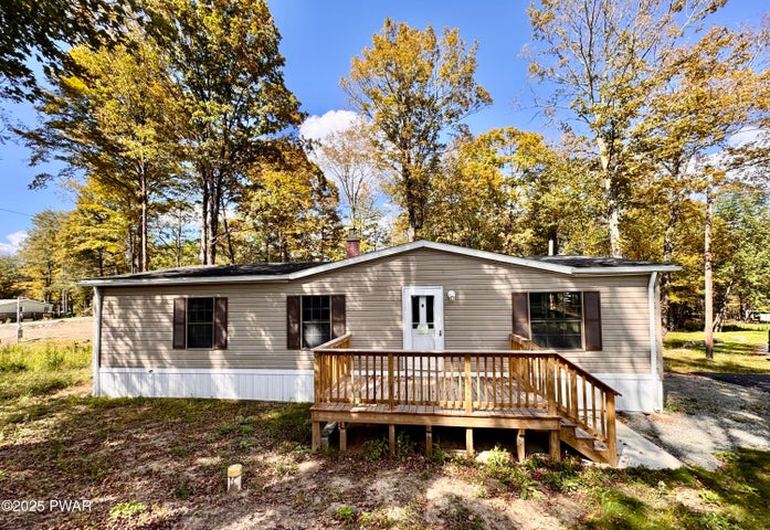 Updated double-wide mobile home offers 3 bedrooms and an open, airy layout. The home features central AC, plenty of natural light, and a brand-new deck with a side porch for outdoor enjoyment. Surrounded by trees and wildlife, it's the perfect setting for peaceful living. Located just minutes from Promised Land State Park and a short drive to Lake Wallenpaupack, this home combines comfort, convenience, and nature—ideal for morning coffee on the deck or evenings under the stars.