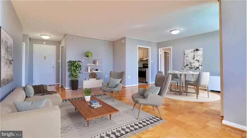 Very spacious two bedroom, two bath apartment condo in convenient Grosvenor Park. Directly across from the Grosvenor Metro and just steps to Strathmore Music Center, this condo features a bedroom and full bath separately with the living area in the middle. All utilities, gas, electric, water/sewer, FIOS cable and internet are included. There is 2 garage spaces and plenty of outdoor parking. 24 hour front desk, building features a pool, fitness center, tennis courts, game room and is only steps to Grosvenor Market. Sorry, no pets and the building is smoke free!
