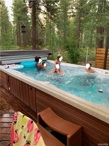 Tahoe Forest Living at It's Best in Montgomery Estates. This wonderful 3 bedroom, 2.5 bathroom home has hundreds of acres of National Forest & trails right behind the fenced back yard. Enjoy swimming in the H2X Swim Spa with Forest Views. This 2-story home has downstairs living with a gas fireplace in the living room, a separate dining area off the kitchen with travertine floors. Keep warm with a wood fire in the family room with oak accents and forest views. The kitchen has custom granite counters & backsplash, with a breakfast bar, custom barstools & lots & lots of hickory cabinets.