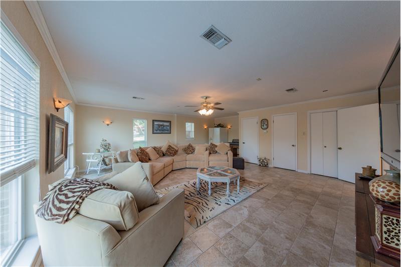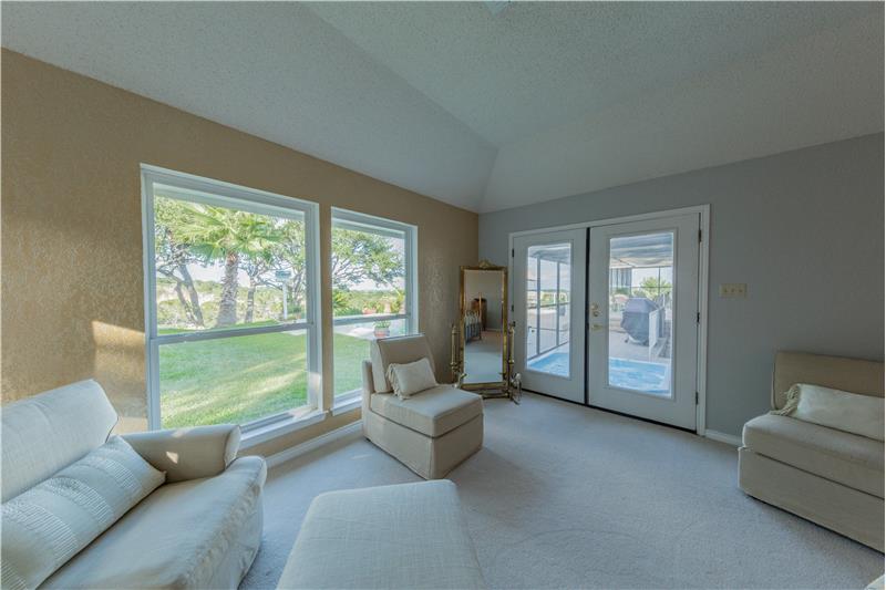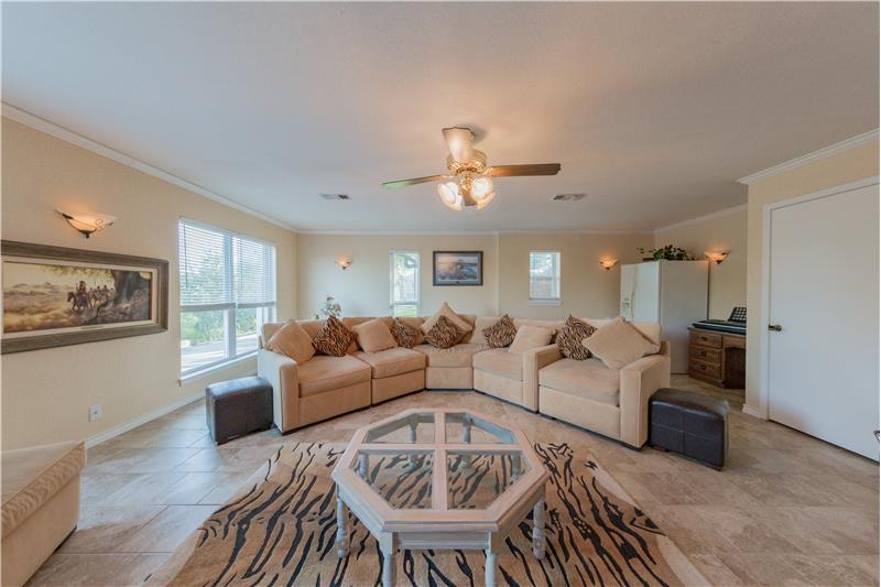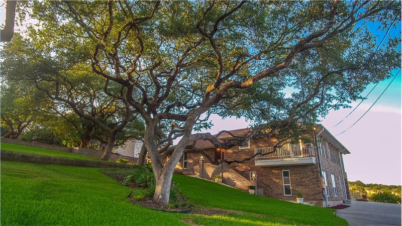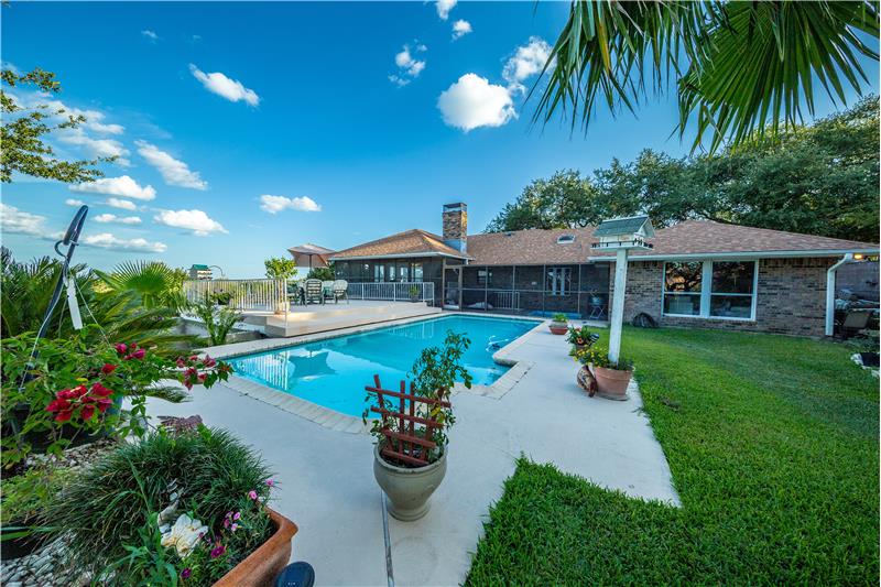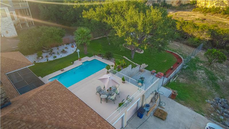 This is a gorgeous home that features a magnificent view of New Braunfels on a huge miraculously manicured lot on 1/2 acre full of oak trees. Entertaining with an open floor plan is highlight of this home. The living room area follows into a cozy, covered screened and tiled patio, hot tub and pool with a large deck, perfect for entertaining.The large master bedroom and bathroom features his and her walk-in closets and a whirlpool tub.The downstairs living area has a variety of options you could use it for including: game room, mother in law suite or second family room.