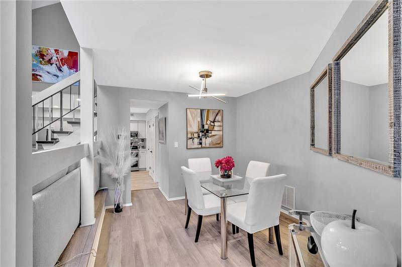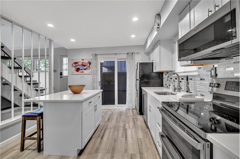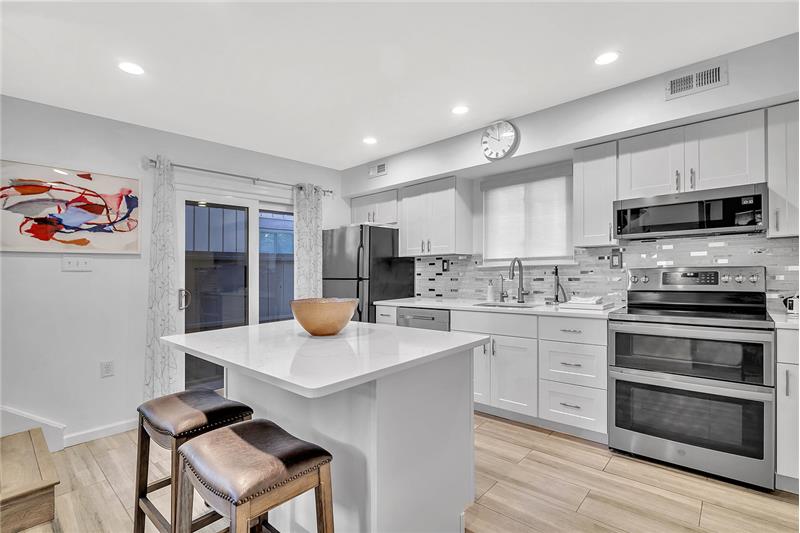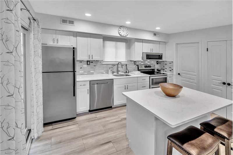 YOUR STYLISH SANTUARY The moment you step inside, you'll feel the difference.. The kitchen is a showstopper, featuring sleek, all-electric stainless steel appliances, modern cabinets, and a breakfast bar island perfect for morning coffee or impromptu dinner parties.