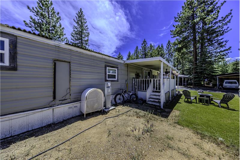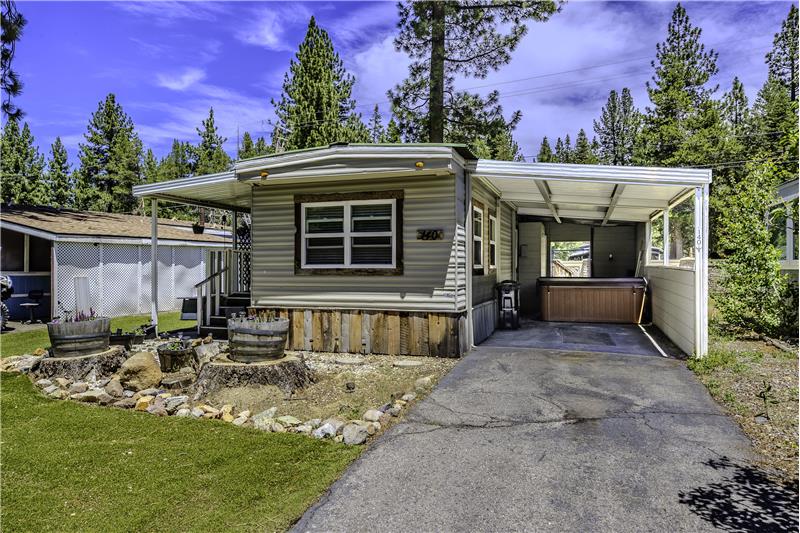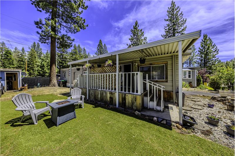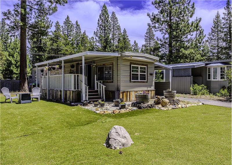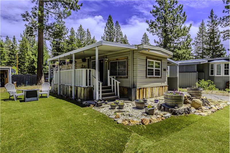 Whether you're looking for a full-time home, a vacation retreat, or an investment opportunity this home is an affordable option. Low-maintenance living, and access to community amenities all set in Tahoe Verde Estates, just minutes from Lake Tahoe, premier ski resorts, dining, shops, and outdoor recreation. The gated community offers,swimming pool, sauna, clubhouse for gatherings and events,Scenic green spaces and walking paths with snow removal included in HOA fees. This charming and rustic 2 bedroom 1 bath bath home sits on a desirable sunny location backing the edge of the park. Inviting co
