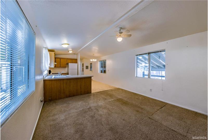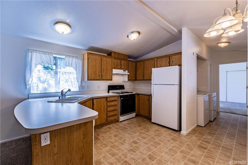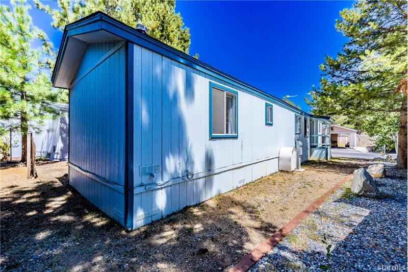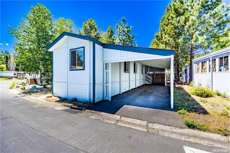 Centrally located in the city of South Lake Tahoe. 3 bedroom and 2 bath manufactured home with a wonderful floorplan. Vaulted ceilings through out with an open kitchen, dining room and living room. This unit gets great morning and afternoon sunlight. Primary bedroom is on the opposite end of the home from the other 2 bedrooms for added privacy. Washer and dryer are included in the sale. 2 car covered carport and a storage shed to store your seasonal items. Space rent is $755 a month plus utilities. Clubhouse, pool and saunas are a few of Tahoe Verde Mobile Home Park amenities.