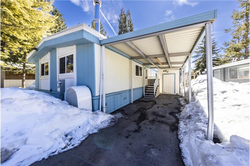 Affordable large 2 bedroom 2 bathroom home located in the city of South Lake Tahoe. Open kitchen to the family room. Slider off of the family room to a nice sized covered front porch. Big living room / dining room combo. Seperate laundry room. 2 car tandem carport. Oversized shed for all your seasonal storage items. Space rent is $725 monthly. Outdoor pool, indoor saunas and clubhouse. Conveniently located to the lake, hiking, biking, shopping and restaurants, ski resorts and the casinos.