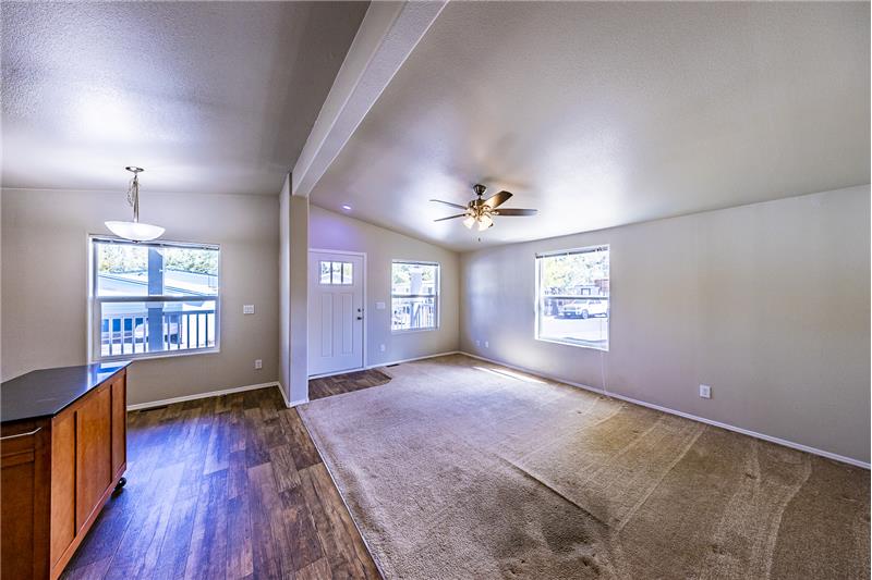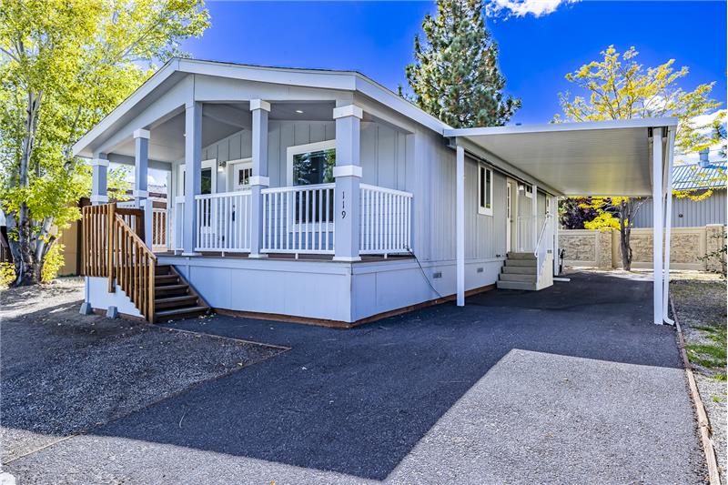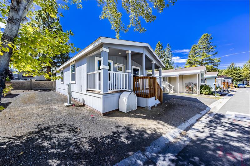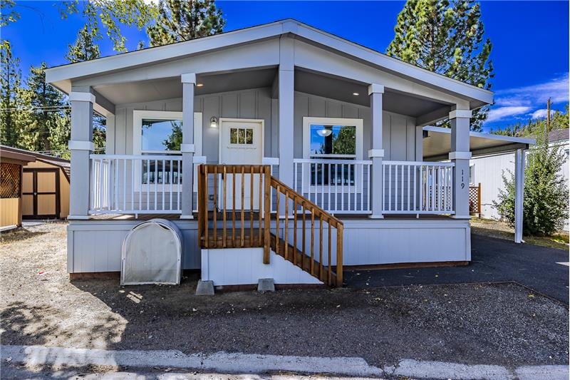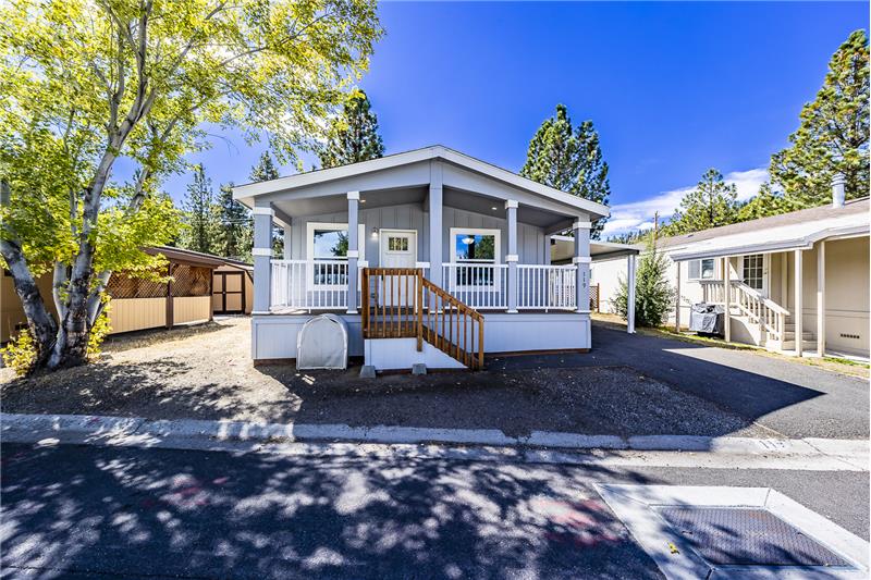 Central location in the city of South Lake Tahoe. Well maintained newer manufactured home situated in the Tahoe Verde Mobile Home Park. Spacious covered porch. 2 bedroom, 2 bath 1104 sq. ft home. Vaulted ceilings with large windows through out. The kitchen is open to the living room and dining room. Separate laundry room, washer and dryer are included in the sale. Big primary bedroom with a walk in closet. Primary bath has 2 sinks and an oversized shower. 2 car covered carport. Room to add a shed for additional seasonal storage. Space rent is $775 a month plus utilities.
