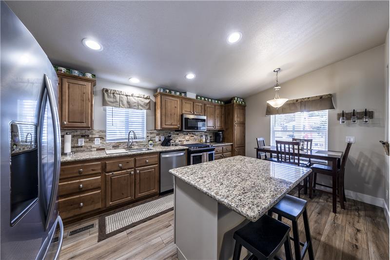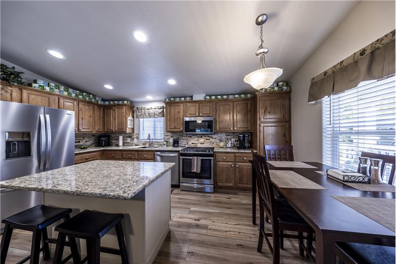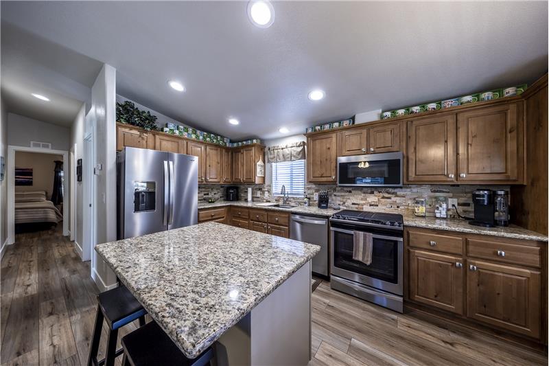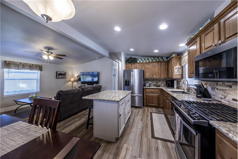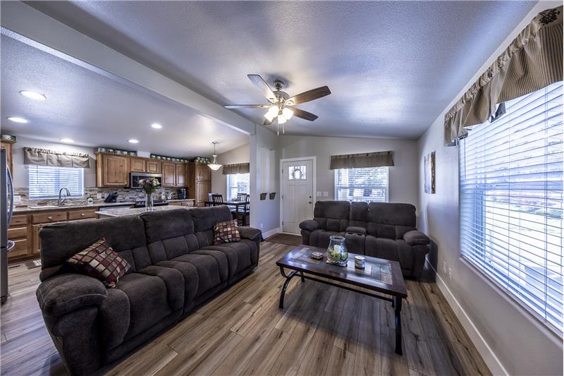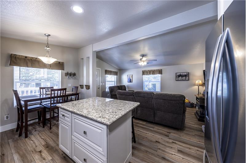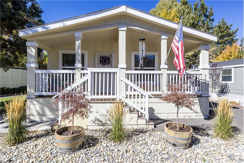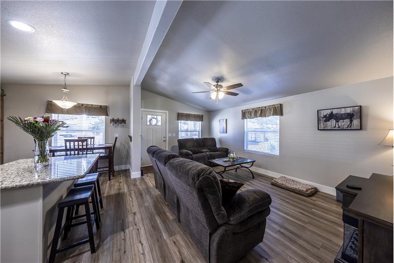 Desirable park location with filtered forest and mountain views. Pride of ownership is apparent once you've arrived at this meticulously maintained 2 bedroom 2 bath home. Big covered front porch. The entry leads into the living room, dining room and kitchen with vaulted ceilings. New SmartCare flooring through out. The kitchen has all newer appliances and a great center island. The countertops in the kitchen and bathrooms have all been upgraded to granite. Primary bedroom with walk in closet and vaulted ceilings. Primary bath with double sinks and an oversized shower. Separate laundry room.