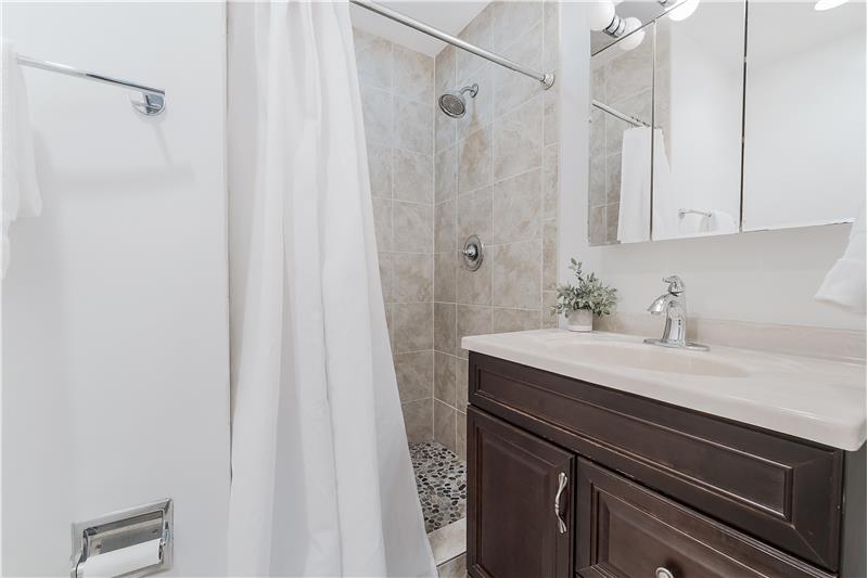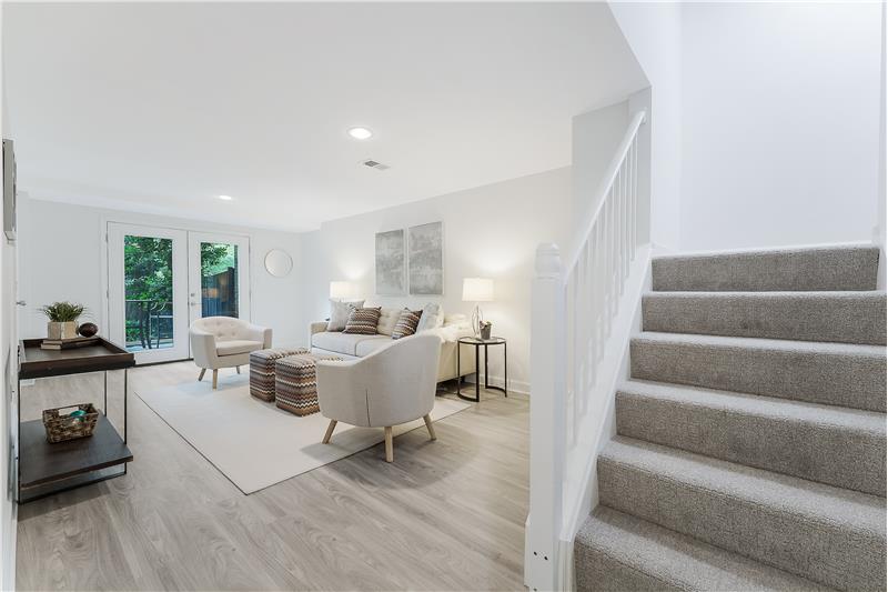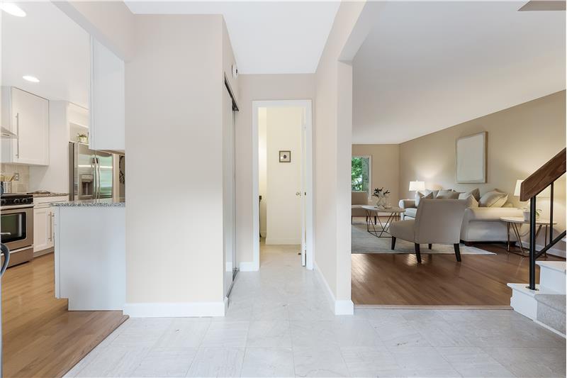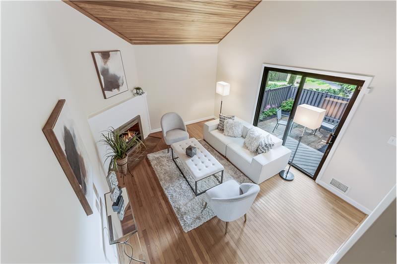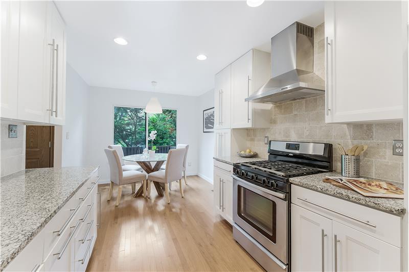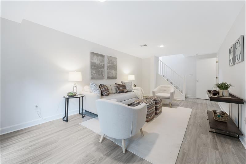 Completely updated end unit with private fenced backyard. Main level features gleaming hardwood floors, beautifully renovated kitchen, and family room with wood burning fireplace and vaulted ceilings. Upper level offers 3 generous sized bedrooms and 2 renovated full baths. Finished walk-out lower level with rec room, den/office, 3rd full bath, and large storage room. Rear deck overlooking landscaped, private fenced backyard. New water heater, electric panel, front door. Must see to appreciate!