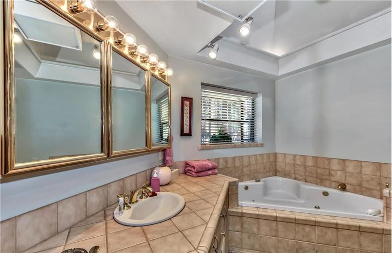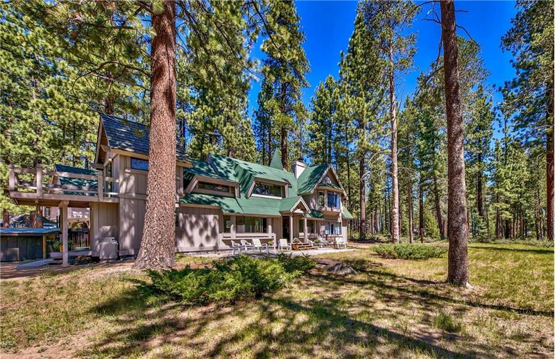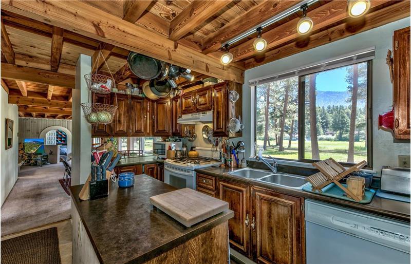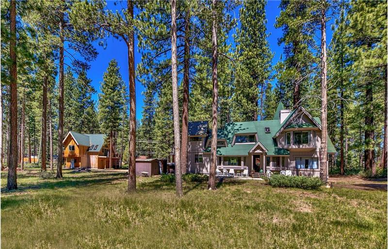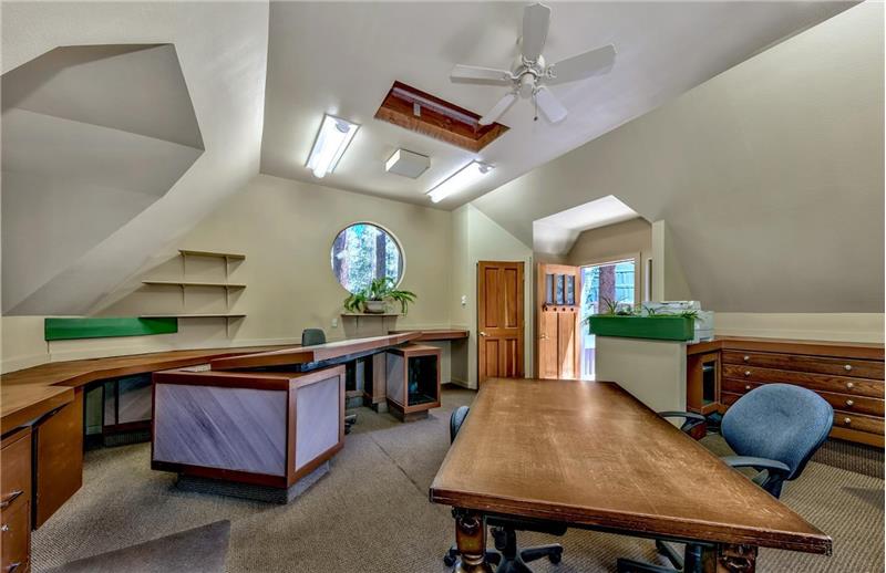 This over a half acre parcel backing the golf course with mountain views is a stunning in town, walk to the Lake'' location. There is a peace & tranquility that only comes with these views and an estate parcel of this size. It was wise to build back from the road and as you come down the driveway you first discover the covered parking with an upstairs private large office/artist studio/bonus space. Just steps to the 4-bedroom, 4 bath home with living room, kitchen & a master suite all with views to the golf course and a second bedroom and bath downstairs. Upstairs offers a second master suite