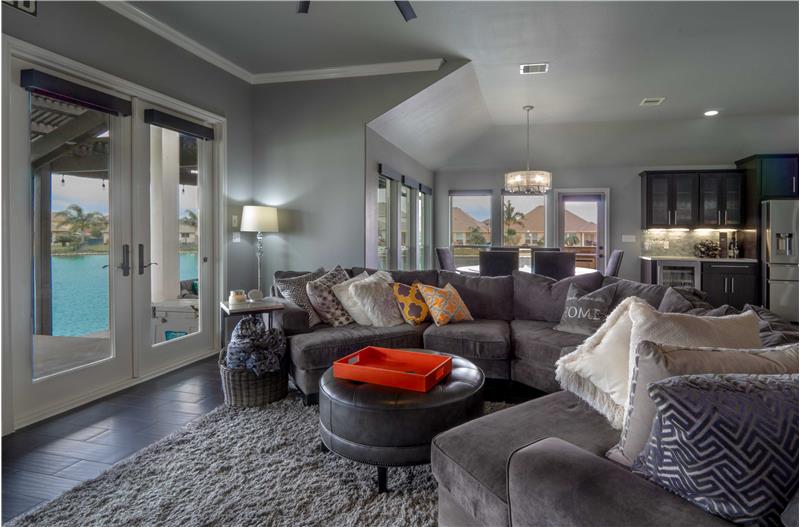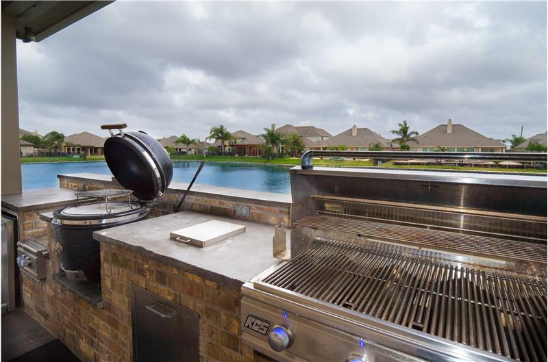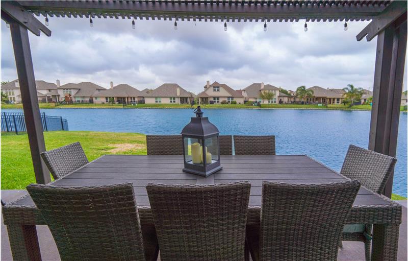 RARE find in Rancho Vista's prestigious Reserve area on the lake! Come enjoy the peace and tranquility of this immaculate 4 bedroom home that has TWO sides lakefront! This home also has an office with its own lakefront patio, 3.5 baths and a 2.5 car garage. The open kitchen has an oversized island, stainless steel appliances and gas stove top. Step outside off of the kitchen into the outdoor kitchen that has everything you can imagine! Oh and those gorgeous lake views! Inside there is even more to offer with an extended theater/game room. Come see these views that rival "island living".