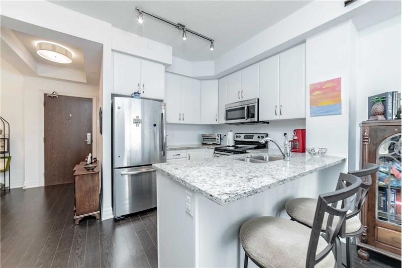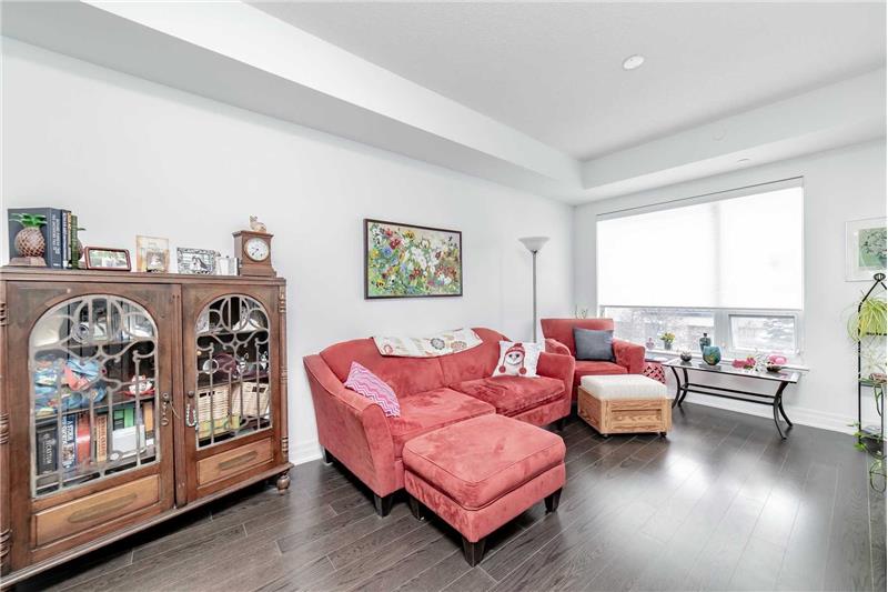 1 Bedroom Plus Den, 9' Ceiling With Floor To Ceiling Windows, Granite Counter With Breakfast Bar, Engineered Hardwood Throughout! Facilities: Outdoor Salt Water Pool & Bbq Hut, Garden, Gym, Hot Tub, Recreation/Party Room, Welcoming Lobby.Walking Paths Through Conservation Right Outside Your Front Door. Short Walk To Public Transit, Parks, Shopping, Entertainment, Restaurants, 404.