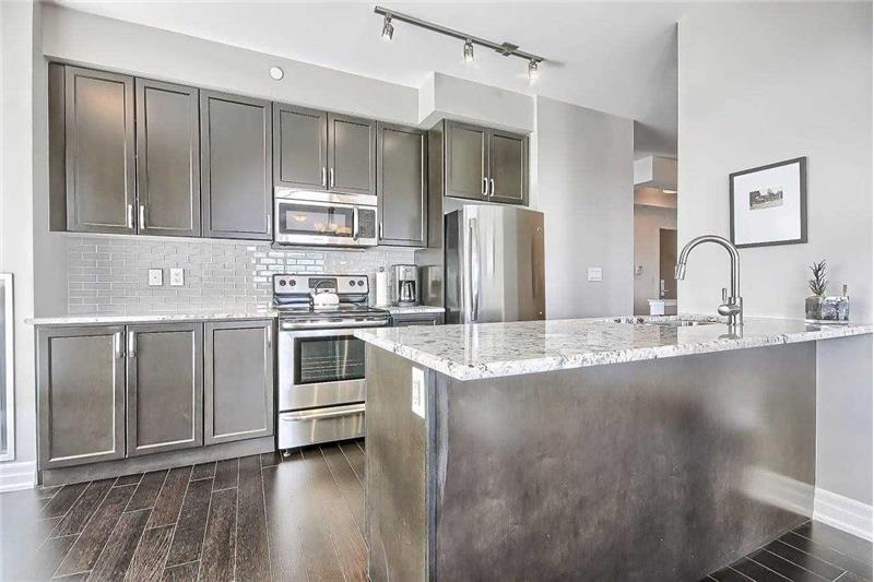 Gorgeous 2 Bed 2 Bath + Den Unit On The Southeast Corner. 1259Sf Filled With Natural Sunlight. Spacious Balcony With Lovely Views Of The Park-126Sf. 2 Parking Spaces. Granite Counters. Stainless Steel Appliances. 9' Ceilings. Engineered Hardwood Floors Throughout. Ensuite Laundry. Shopping, Theatre, Dining And Go Station All Walking Distance. Shows Beautifully!!!