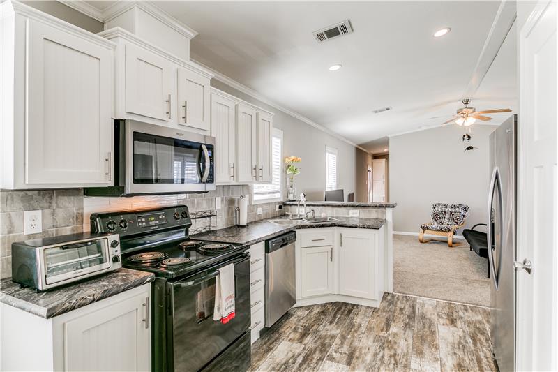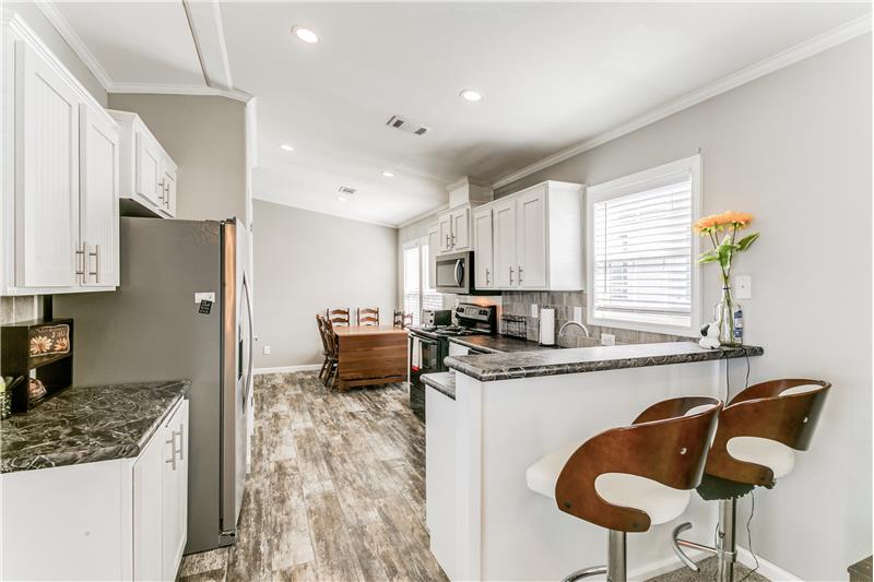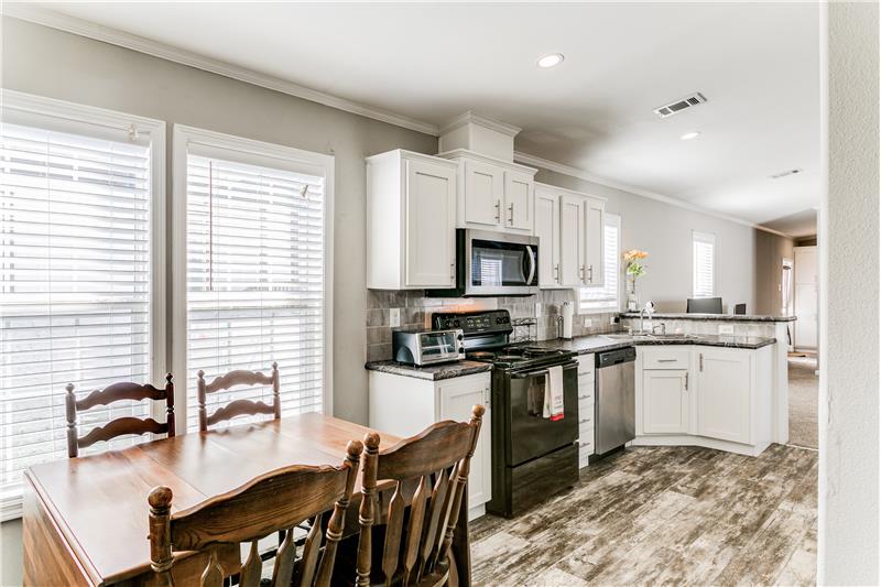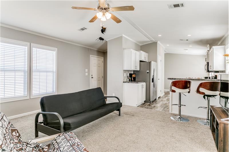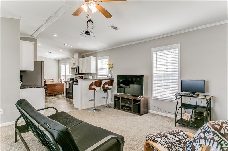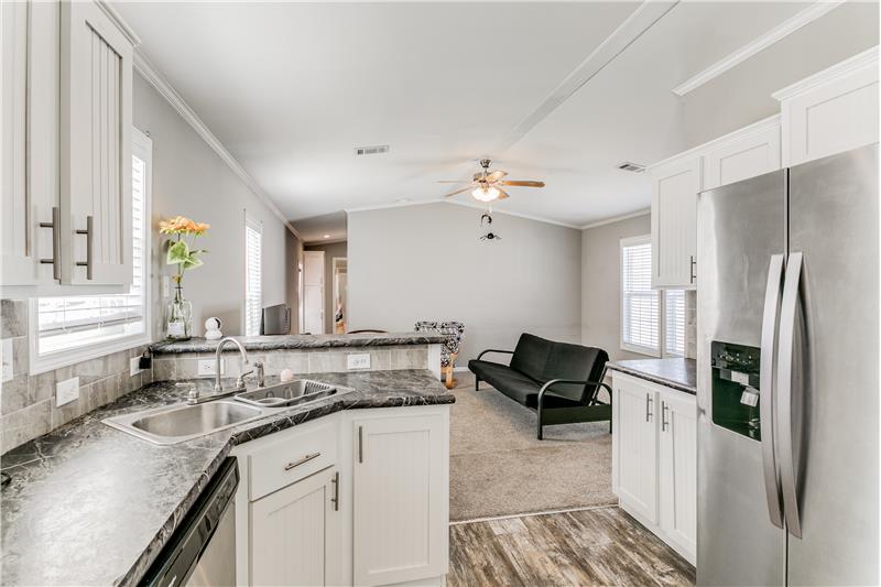 This superb 2018 Champion mfg home is like-new & affordable, also fully furnished! Boasting 3 beds & 2 baths & 1292 sq ft + shed + covered porch & carport, it's nestled in the premier Harston Woods community. Enter to find an open layout w great features including brushed nickel fixtures, wood-look laminate floors, vaulted ceilings, & crown molding. Notably, this home was manufactured at the Athens plant, Champion’s luxury brand. The kitchen is a highlight, featuring SS appliances, elegant cabinets w brushed nickel pulls, granite-look counters w elegant tile backsplash, & breakfast bar.