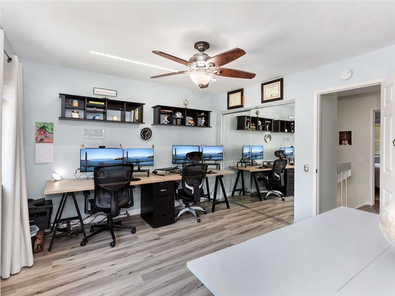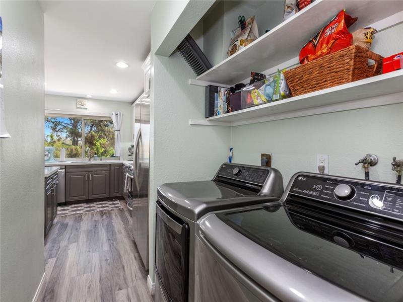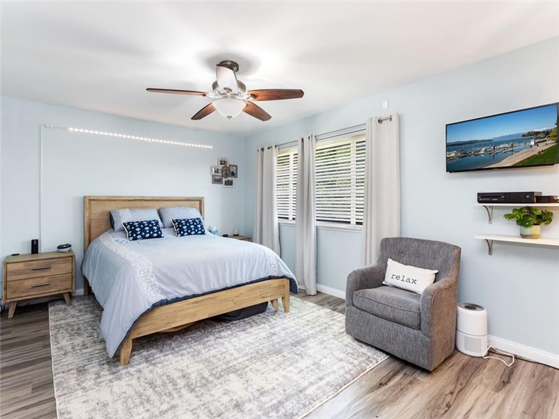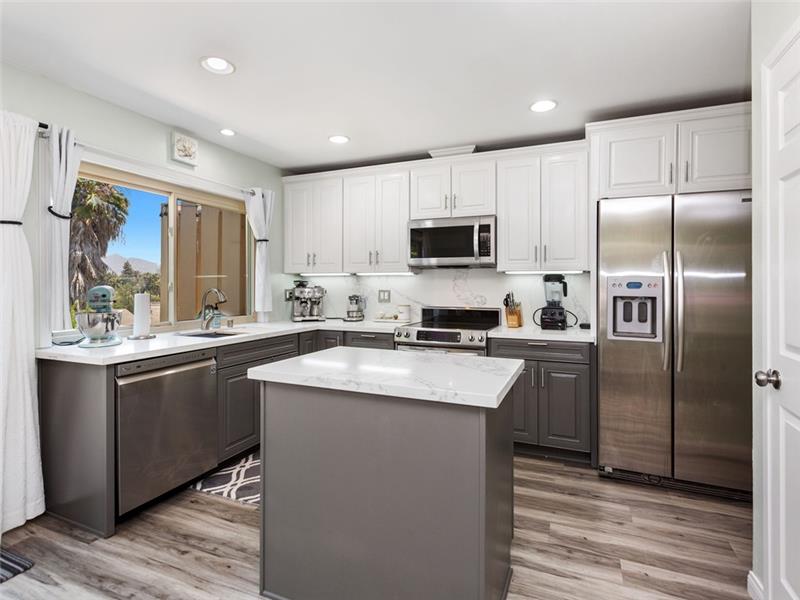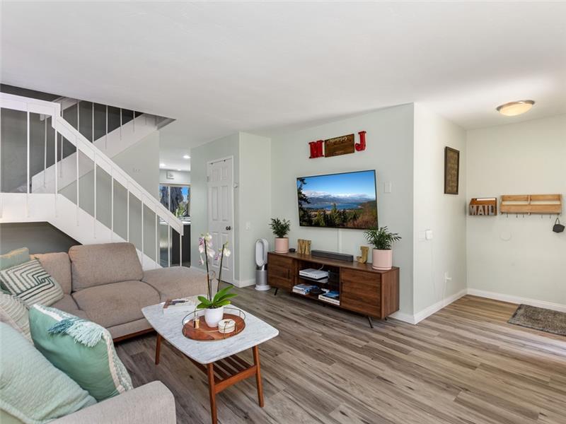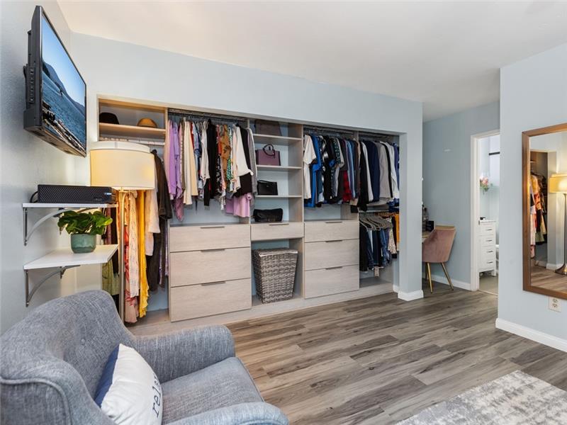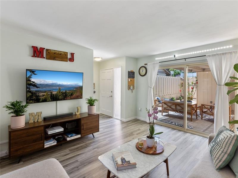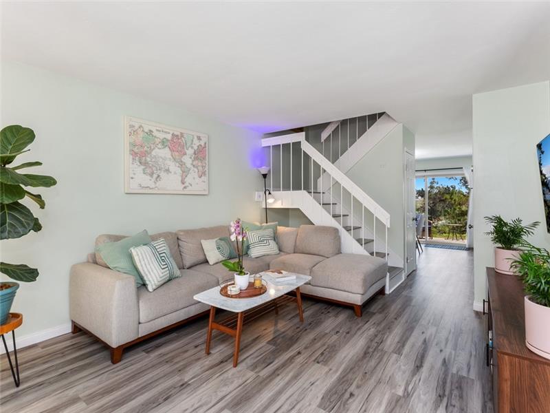 Remodeled, move-in ready. Spacious floorplan with beautiful new vinyl plank flooring throughout, no carpeting. The kitchen has loads of cabinet space, ambient lighting, waterfall quartz countertops, a center food prep island, and stainless appliances. This plan features a half bath on the main level. Upstairs, both bedrooms share the remodeled tub/shower, yet, have their own en-suite bathroom with tile plank floors, white cabinetry, granite counters, and upgraded fixtures. The Master closet has been built out by California closets. Large front patio perfect for entertaining.