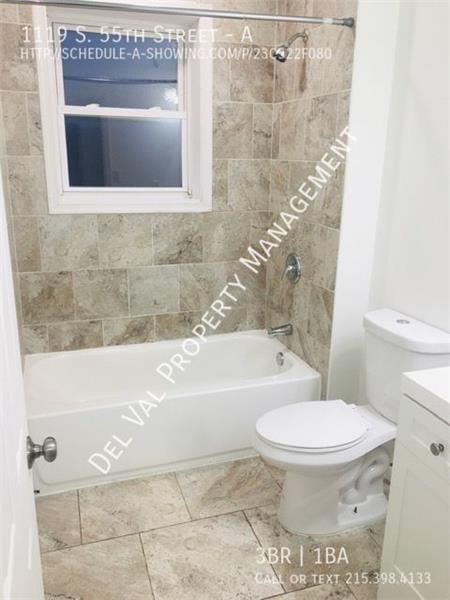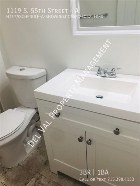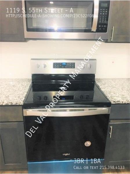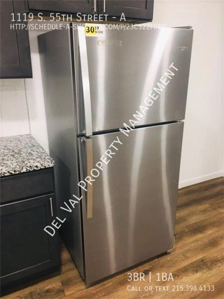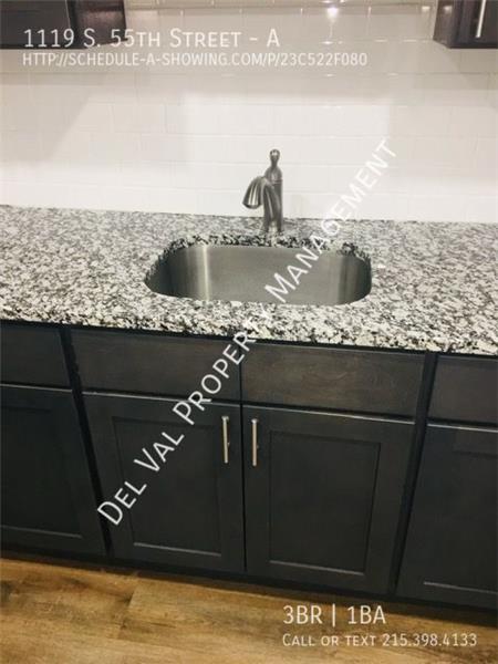 - We've Improved the Rent! Newly Renovated Bi-level 3-Bdrm Apartment for Rent – 1119 S. 55th Street # A – Southwest Philadelphia - $1395/month plus electric, water and $35 flat fee for Gas. Cost of trash removal, snow removal and sewer is included in rent - 3 Bedrooms - 1 Bathroom - Street parking - Eat-in Kitchen has Stainless steel appliances, granite countertops, new cabinets and more! - Walk to public transportation, shops, eateries and four (4) blocks to Cobbs Creek Park trails - Washer/Dryer hook-ups - Please see Description Page for more information!