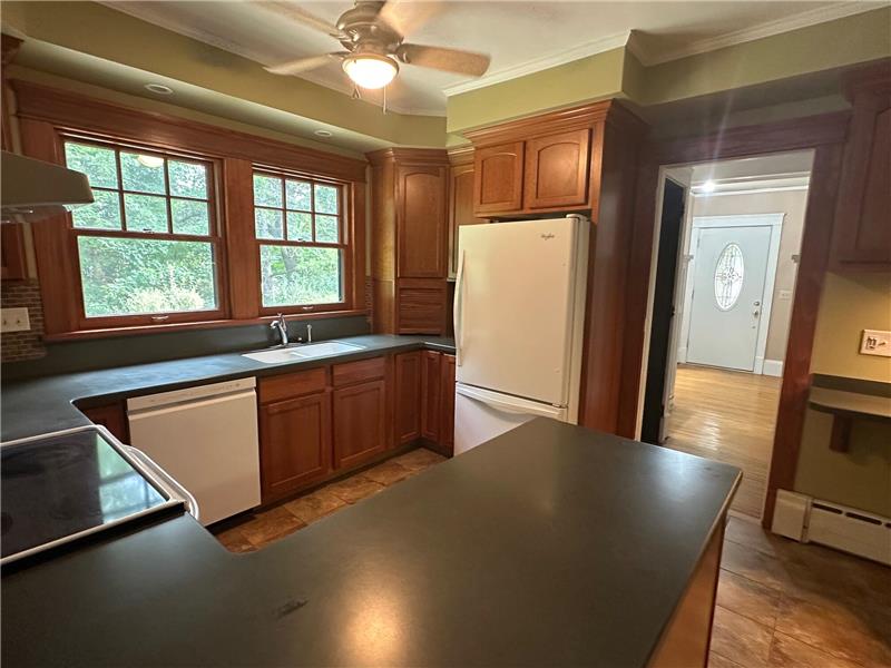 Very Well maintained 5 bedroom, 1.5 bath home, full basement with large storage area, family and rec room plus large laundry room with shower, newer mechanicals and upgrades, Hardwood floors throughout, solid wood interior doors, expanded walk-up finished attic, built-in children's bed with plenty of storage for all those toys, lots of house storage space, pocket-doors in living room & formal dining room, enclosed front porch, natural fireplace, paved driveway, large .65 acre wooded lot.