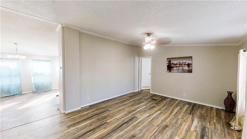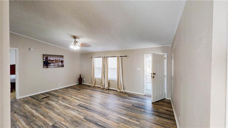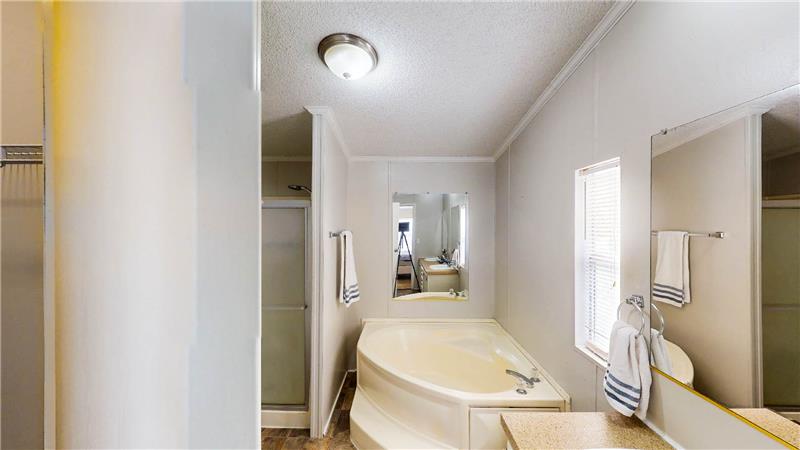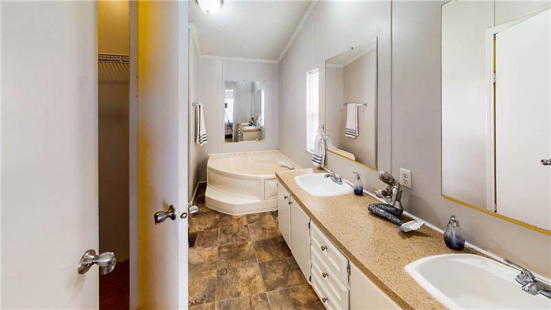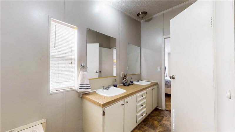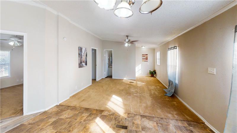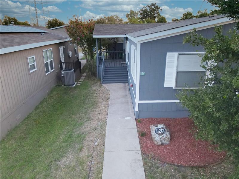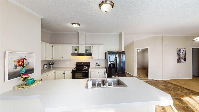Super affordable (2002) manufactured home in fantastic Harston Woods community. Great features - kitchen has tile-look vinyl flooring, formica counters, lots of cabinets-storage, black appliances & venthood. Kitchen has large island with breakfast bar. Neutral color scheme & modern fixtures throughout. Open floorplan& kitchen opens to living & dining. Ceiling fans & window coverings. Master bath has double vanities, shower, and huge walk-in closet. Several rooms w vaulted ceilings. Separate utility room with shelving. Landscaped lot. 2-car carport; large covered front porch; storage shed!