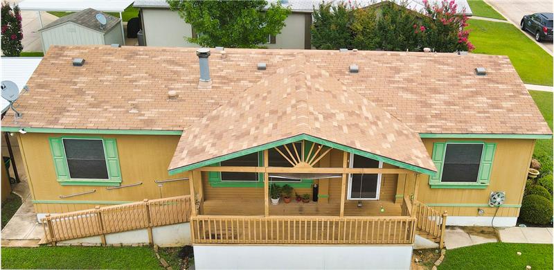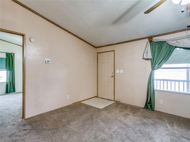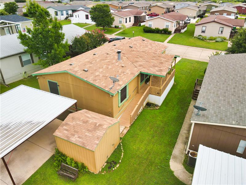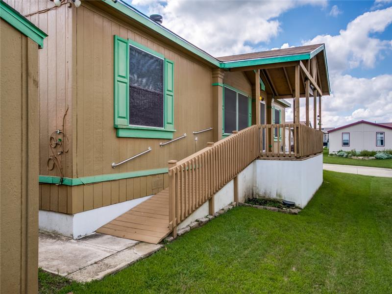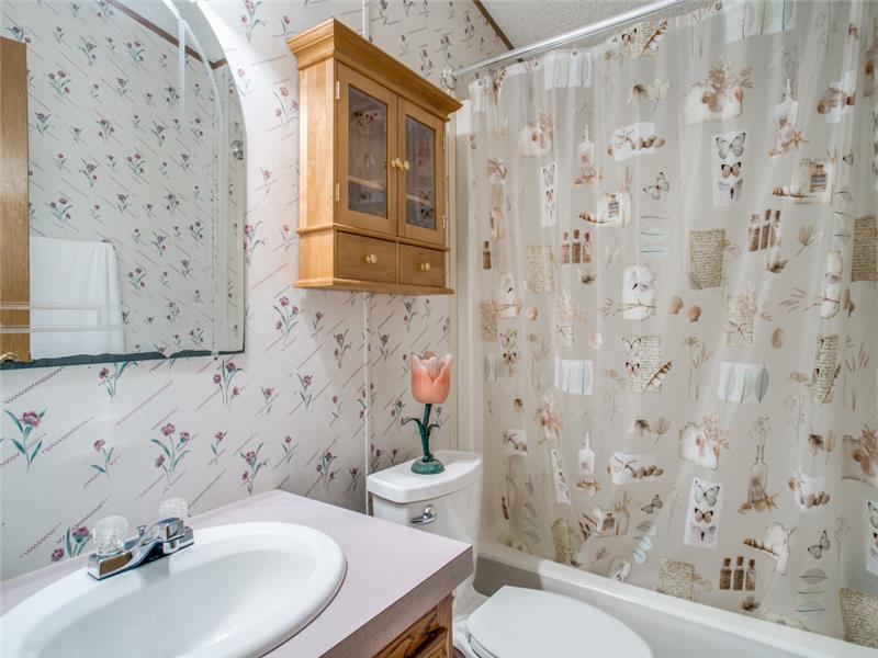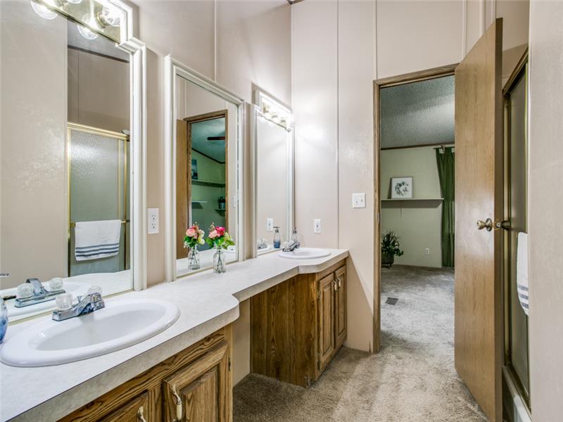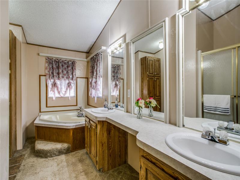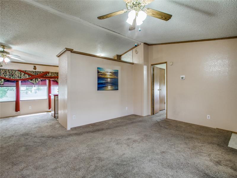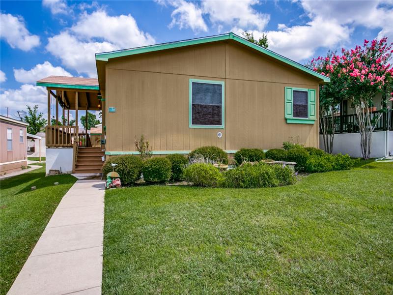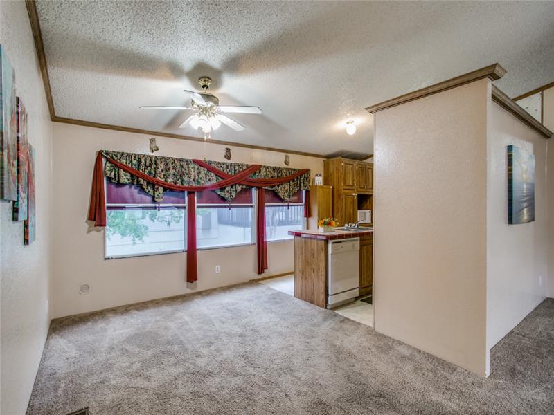 Great starter home (1994 manufactured home) in fantastic Harston Woods community! Great features – kitchen has formica & tile counter w/tile backsplash, island + abundant wood cabinets w pulls, vinyl flooring, open to living & dining! Lrg living room w/wood-panel wood-burning fireplace w/tile hearth & wood mantle. Neutral color scheme. Ceiling fans & window coverings. Master bath has double vanities, shower & garden tub, & large walk-in closet; lots of wood cabinets w/pulls. Several rooms w vaulted ceilings. Separate utility room w/cabinets.