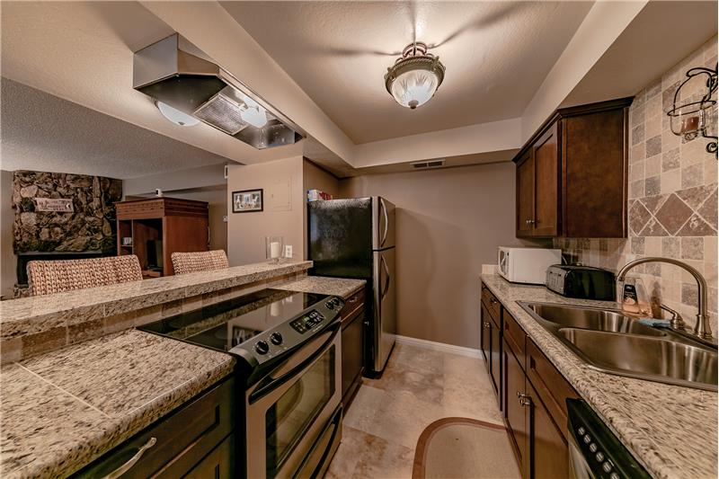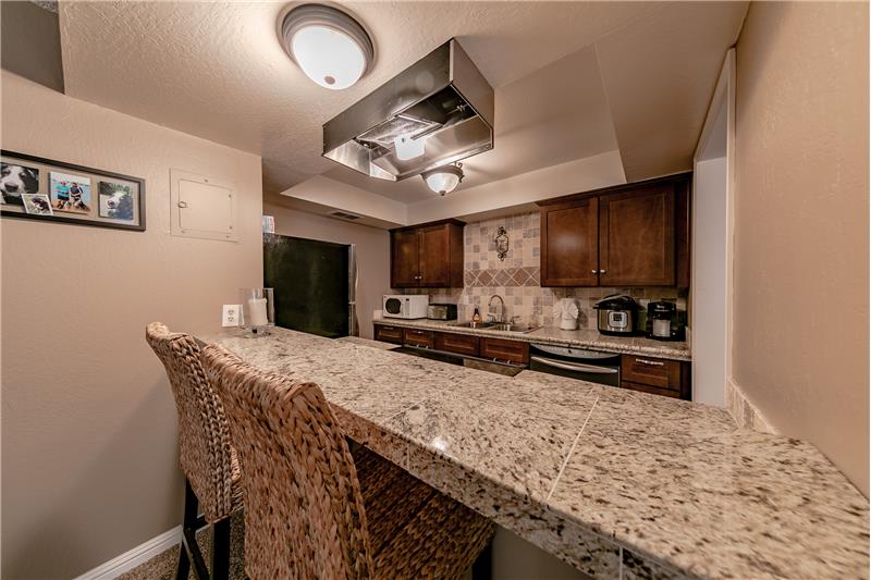 Stunning, beautifully upgraded, three bedroom, two bathroom ground floor condo. Custom kitchen with lovely wood cabinets and granite counter tops along with a breakfast bar. Large built in buffet in the dining area, tile flooring and stainless appliances. Bathrooms feature stone counter tops and nice tile. The warm and inviting living room has a cozy wood fireplace and comfortable furnishings. This spacious unit has lots of built in storage drawers and cabinets. The complex has a large pool and spa as well as picnic tables and barbeque area.