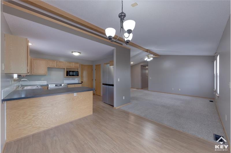 Spacious 2,360 square foot 5 bedroom, 3 bathroom house overlooking a lake near N 119th St W and W 21st St N, just a 7-minute drive to NewMarket Square, where you’ll find all the big name brand stores, the Regal Warren West movie theater, a 10-minute drive to Sedgwick County Zoo, and both I-235 and US-54 highways. This home, built in 1997, features central heat and air conditioning for all year round comfort, large windows for natural light, laminate wood flooring, a fully equipped kitchen with stainless steel appliances, a fully finished basement, a 2-car attached garage, and a privacy-fe ...